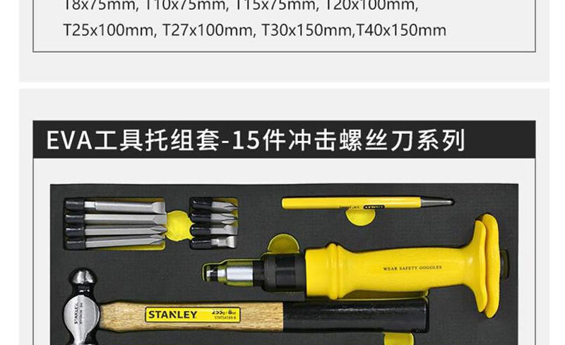 | 产品名称 | EVA工具托组套-15件冲击螺丝刀系列 |