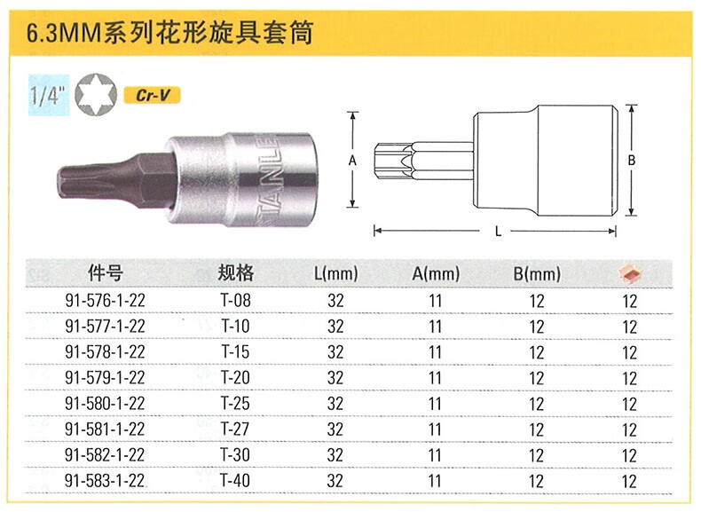 | 产品名称 | 6.3MM系列花形旋具套筒T8 |