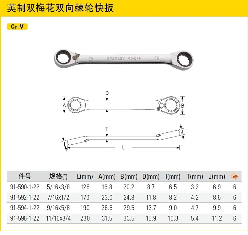 | 产品名称 | 英制双梅花双向棘轮扳手5/16"x3/8" |