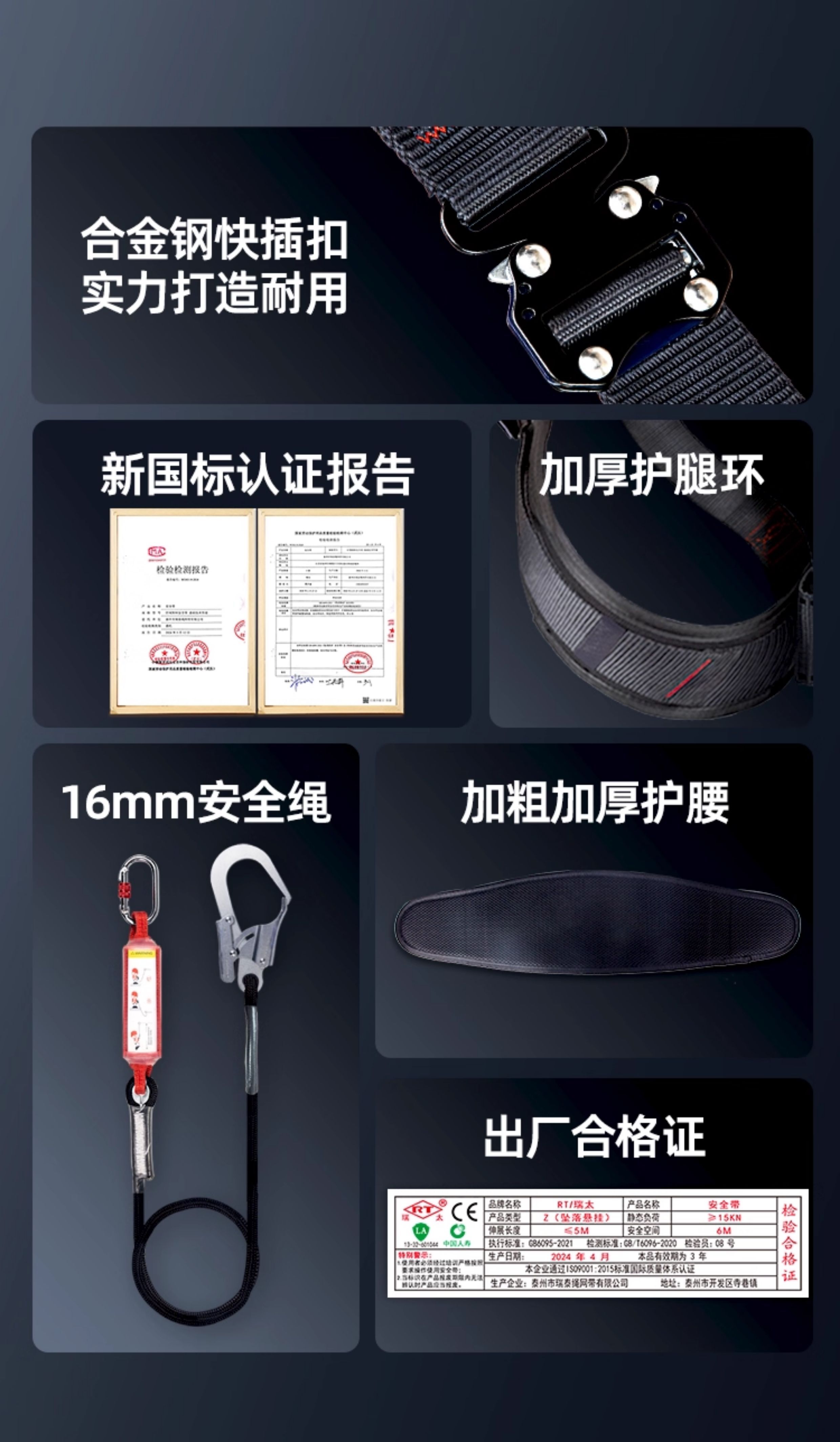 | 产品名称 | 全身五点式安全带高空作业欧式双大钩缓冲安全绳国标防坠落保险带 |