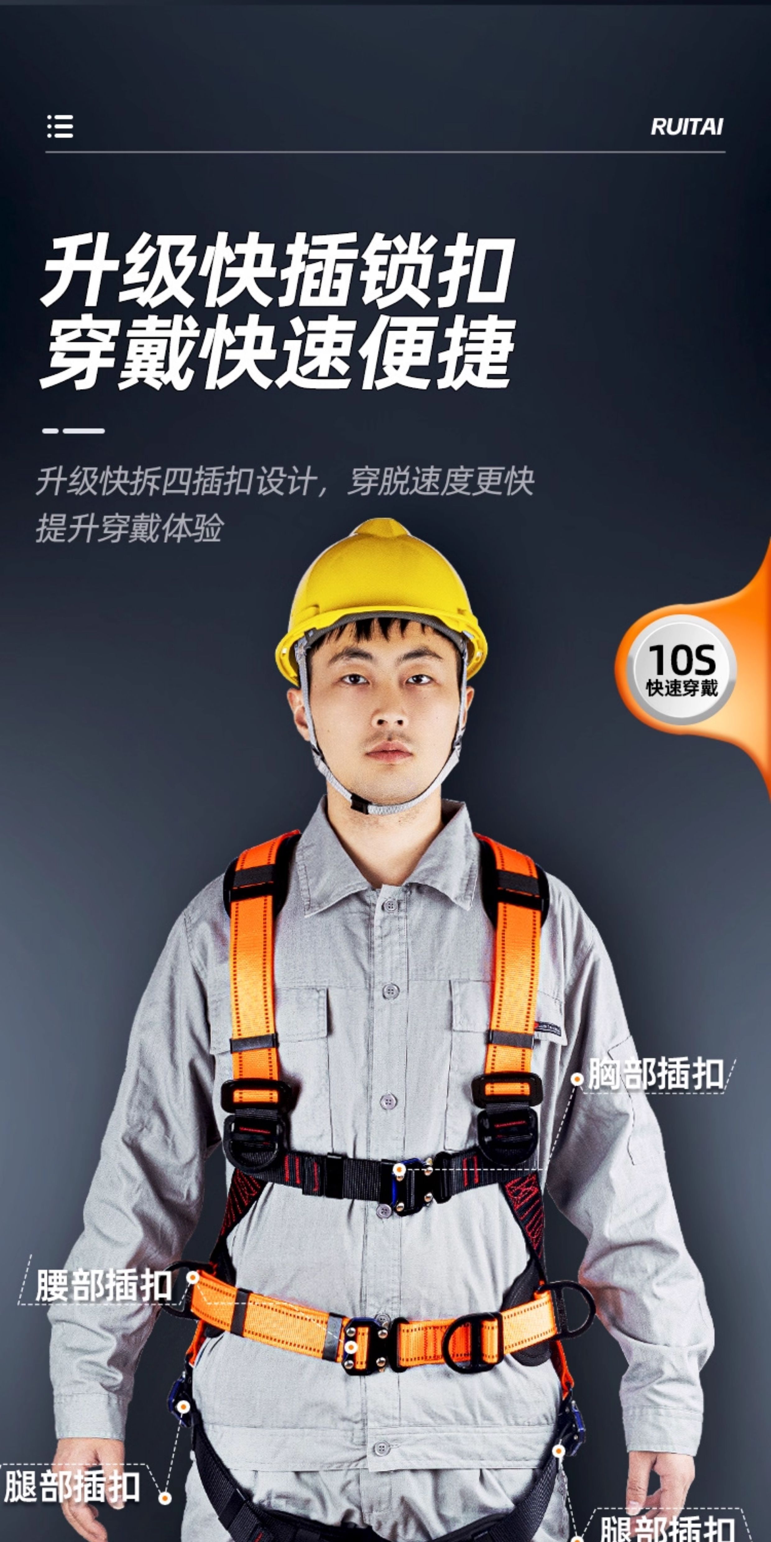 全身五点式安全带高空作业欧式双大钩缓冲安全绳国标防坠落保险带