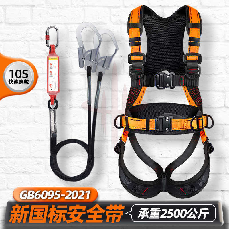 全身五点式安全带高空作业欧式双大钩缓冲安全绳国标防坠落保险带