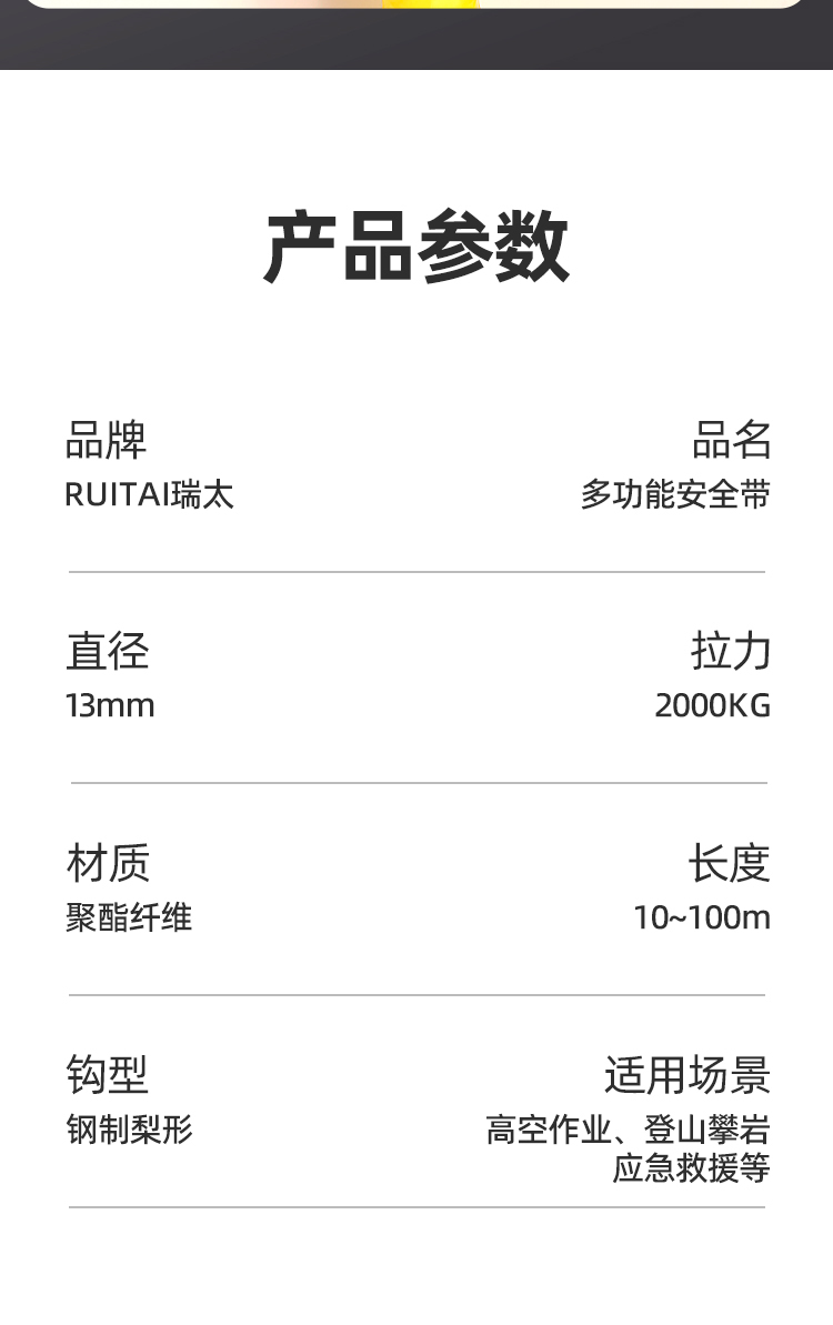 | 产品名称 | 高空作业安全绳耐磨应急救援逃生绳套装户外攀岩保险登山绳带挂钩 |