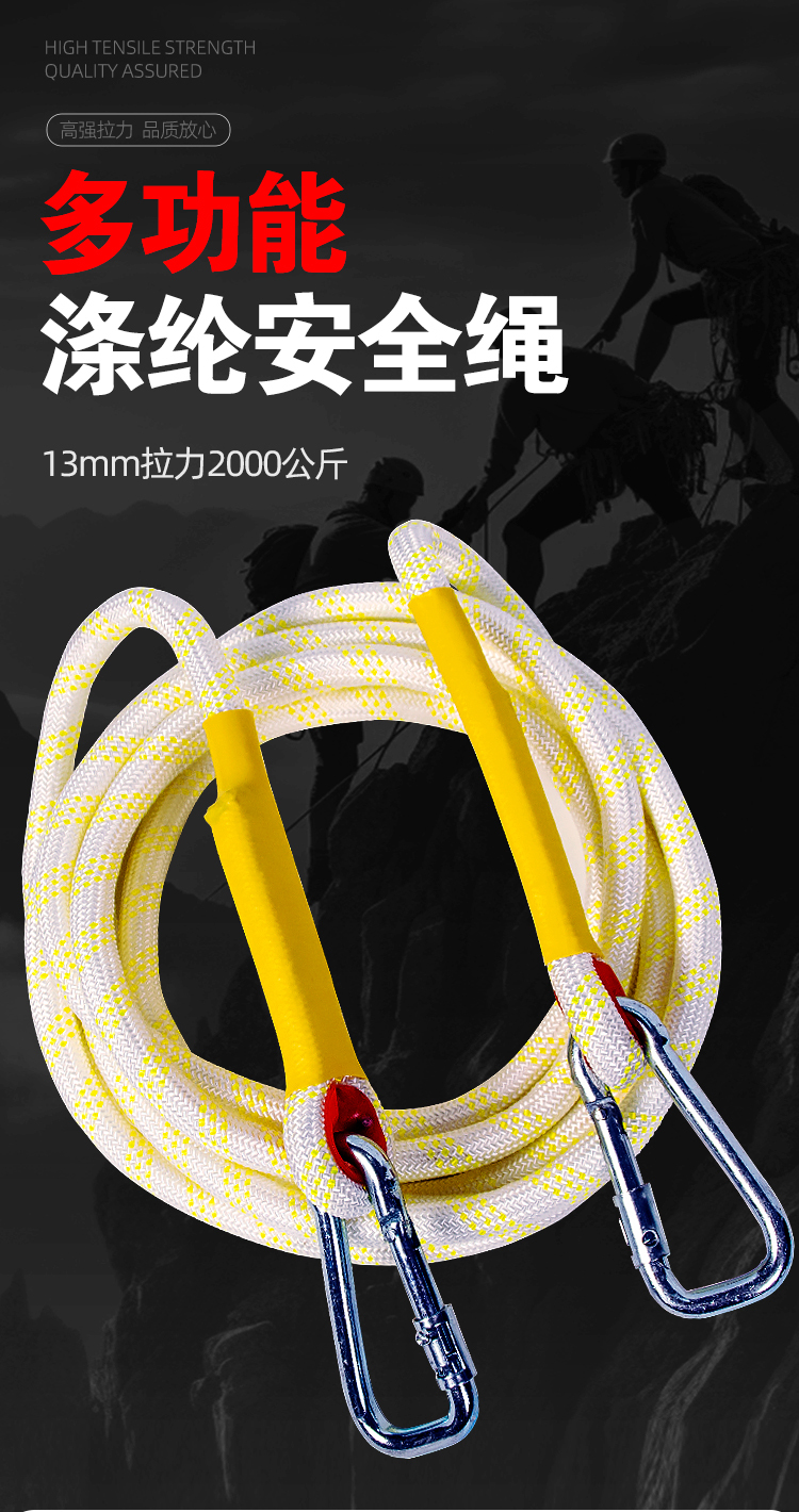 | 产品名称 | 高空作业安全绳耐磨应急救援逃生绳套装户外攀岩保险登山绳带挂钩 |