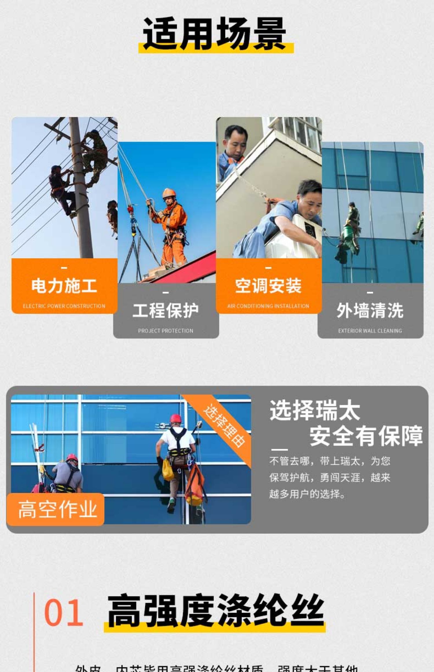 | 产品名称 | 高空作业安全绳耐磨户外蜘蛛人专用空调安装速降保险绳外墙清洗绳 |