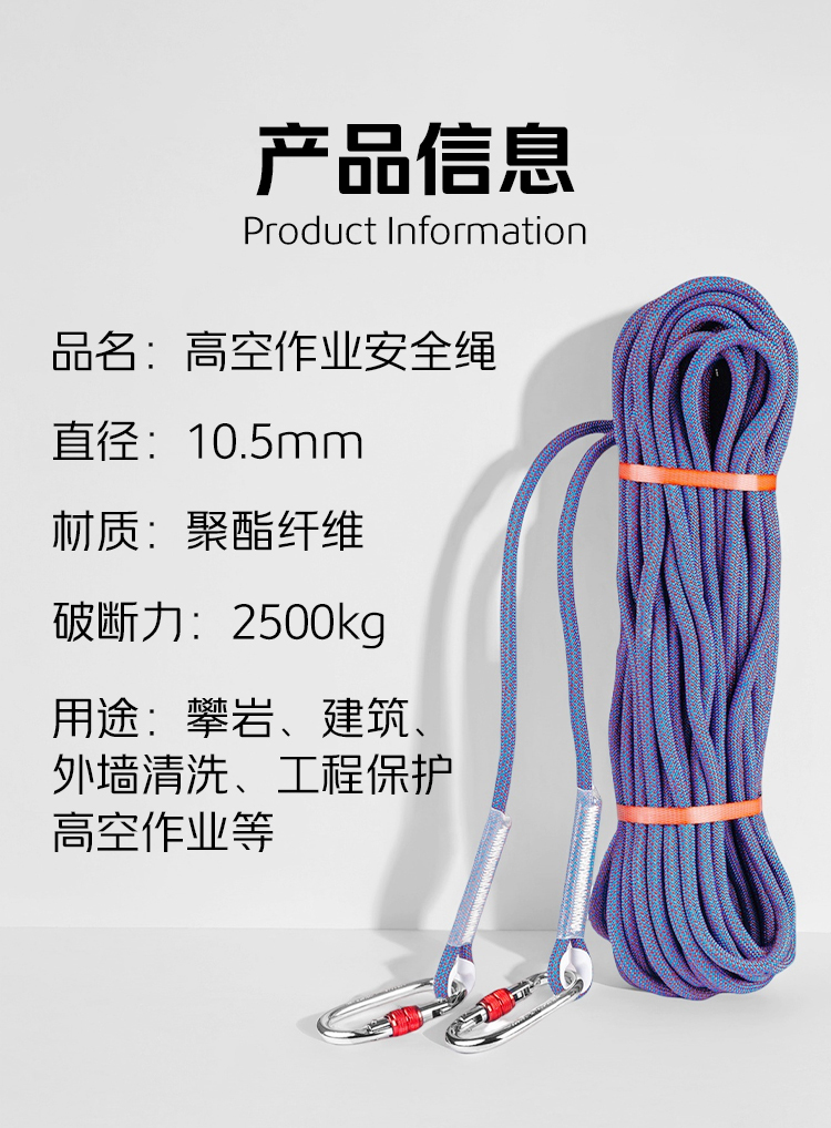 | 产品名称 | 户外高空作业安全绳攀岩登山绳耐磨空调安装家用应急救生绳带挂钩 |