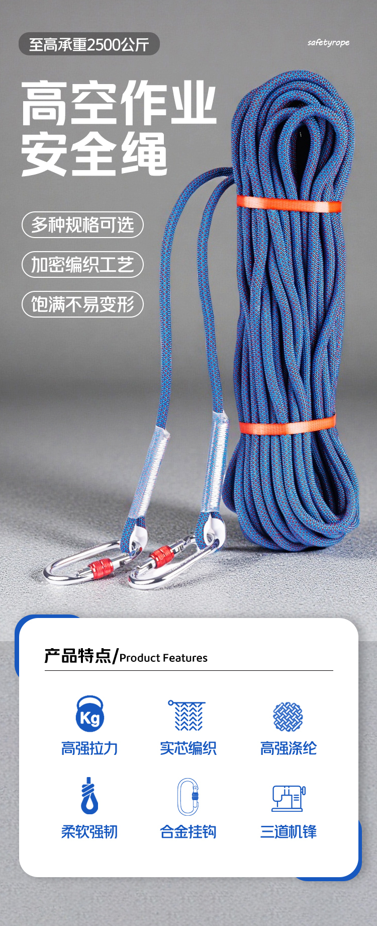 | 产品名称 | 户外高空作业安全绳攀岩登山绳耐磨空调安装家用应急救生绳带挂钩 |