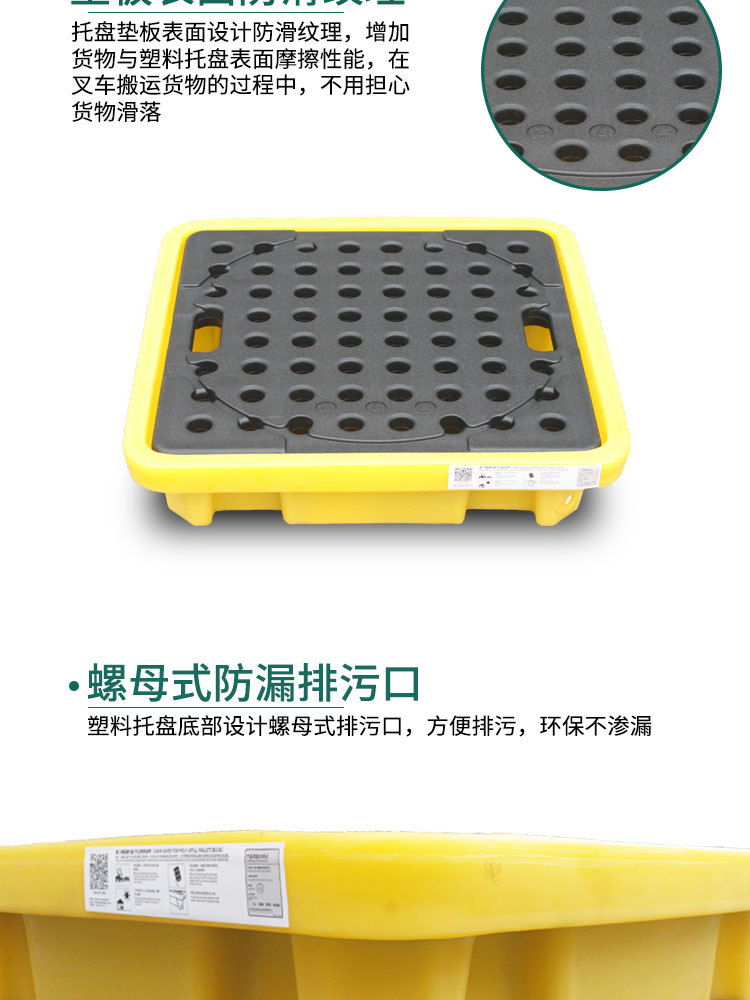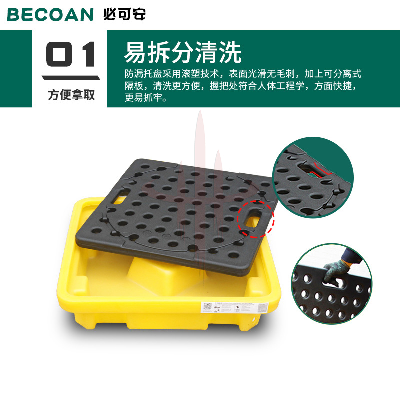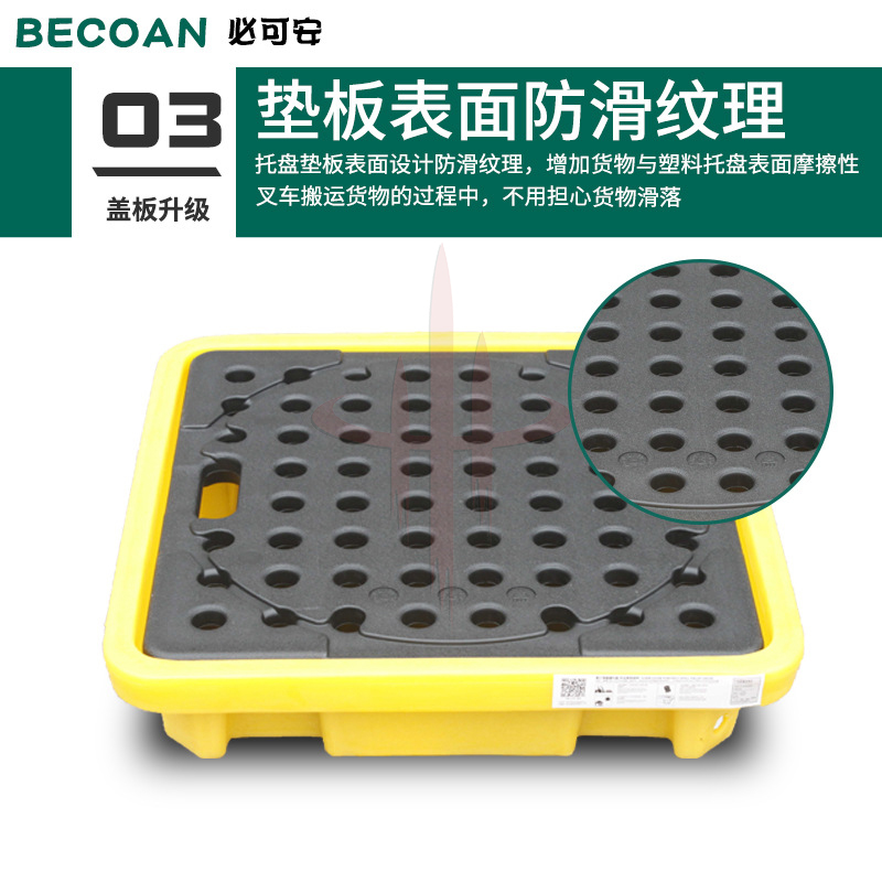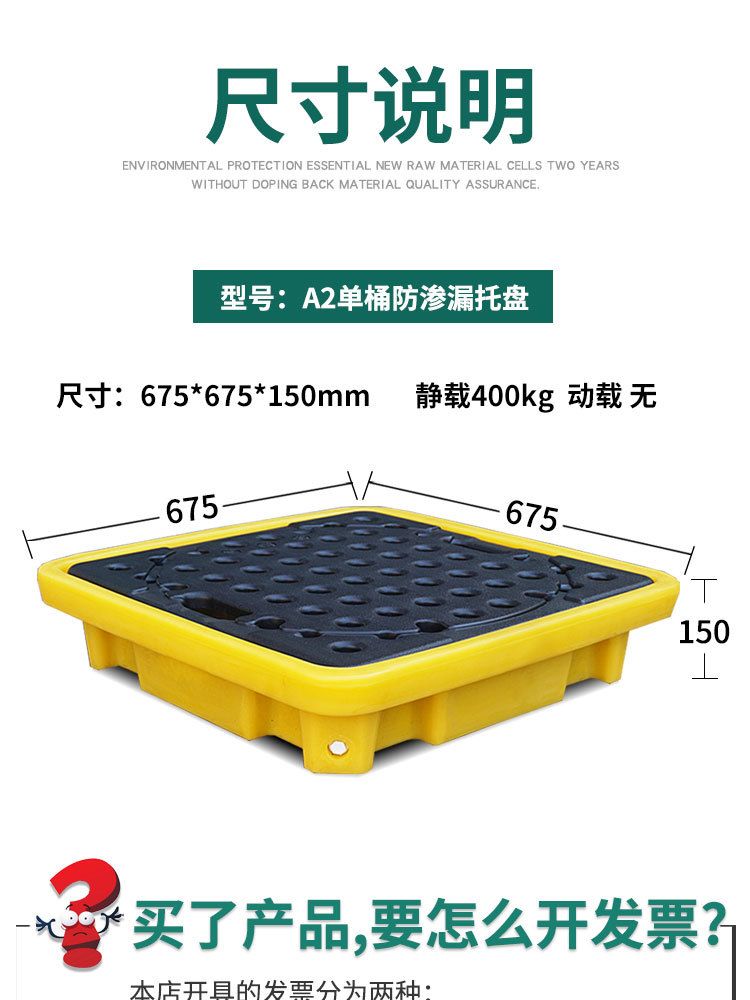 | 产品名称 | 单桶防渗漏托盘防泄漏托盘675*675*150不可进塑料叉车托盘 |