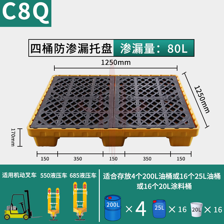 必可安危废防渗漏托盘机油桶防泄漏卡板防漏油塑料化学品液体托盘