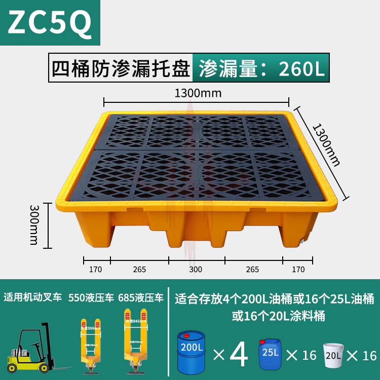 必可安危废防渗漏托盘机油桶防泄漏卡板防漏油塑料化学品液体托盘