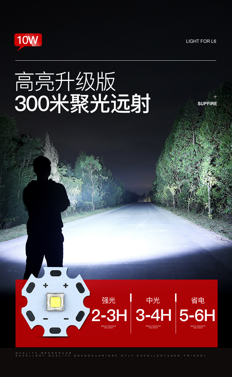 | 产品名称 | 神火L6厂家批发铝合金强光手电筒 LED夜骑钓鱼户外应急防汛手电筒 |