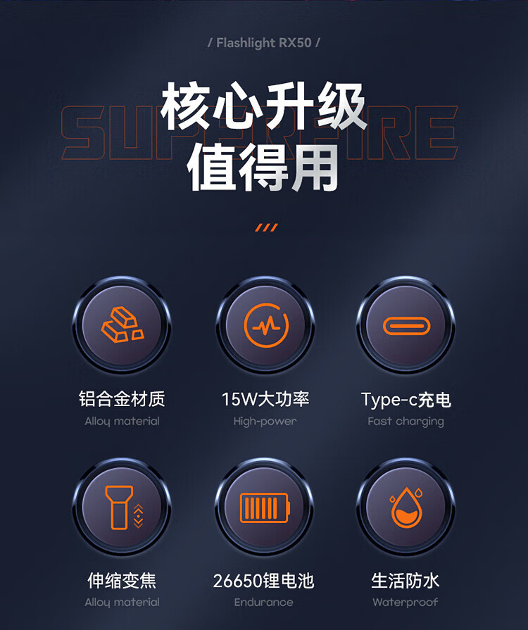 | 产品名称 | 神火RX50/Y20强光手电筒超亮远射户外便携可充电长续航调焦手电 |