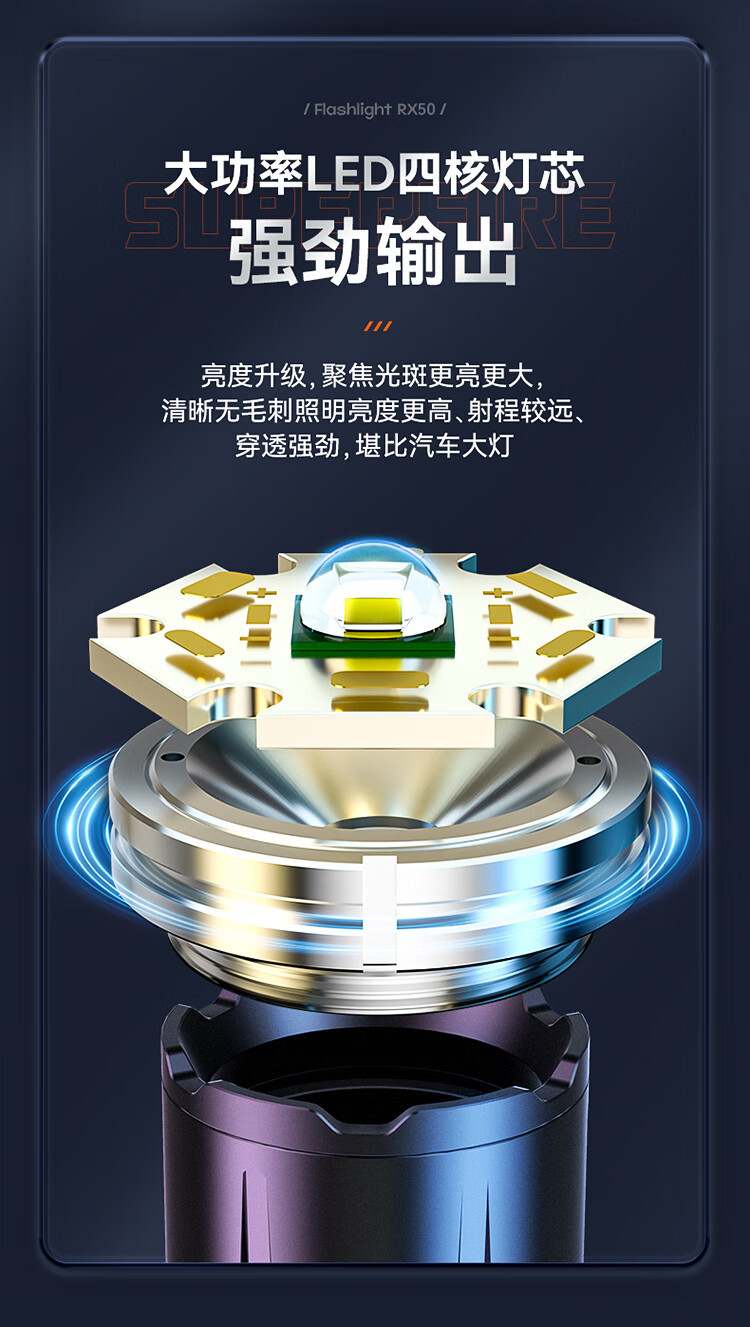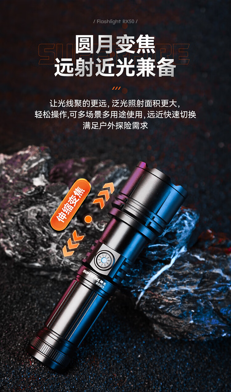| 产品名称 | 神火RX50/Y20强光手电筒超亮远射户外便携可充电长续航调焦手电 |