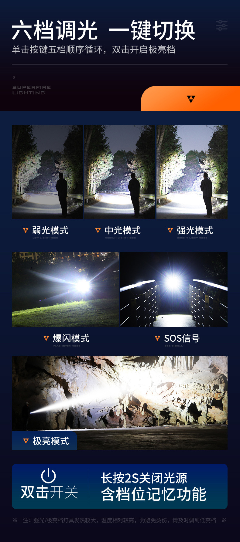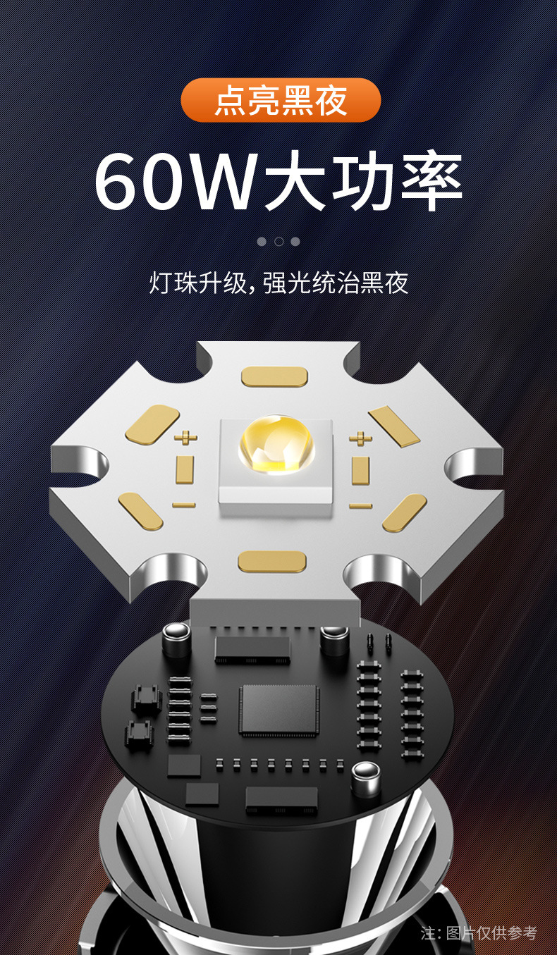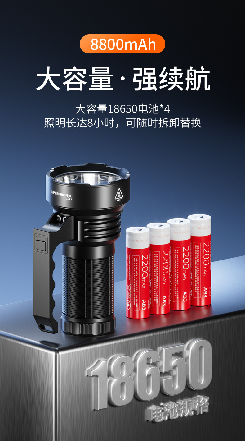 神火L20远射手电铝合金强光手电筒60W大功率夜骑钓鱼户外应急防汛
