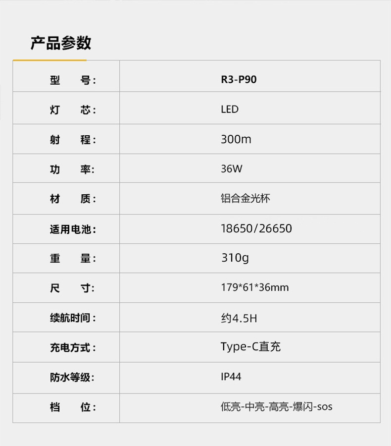 | 产品名称 | 神火R3强光手电LED铝合金大功率户外防汛防水高亮远射应急手电筒 |