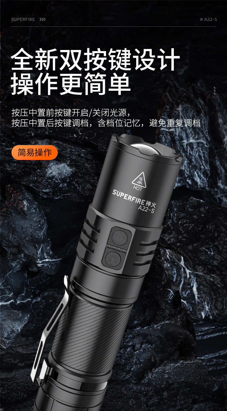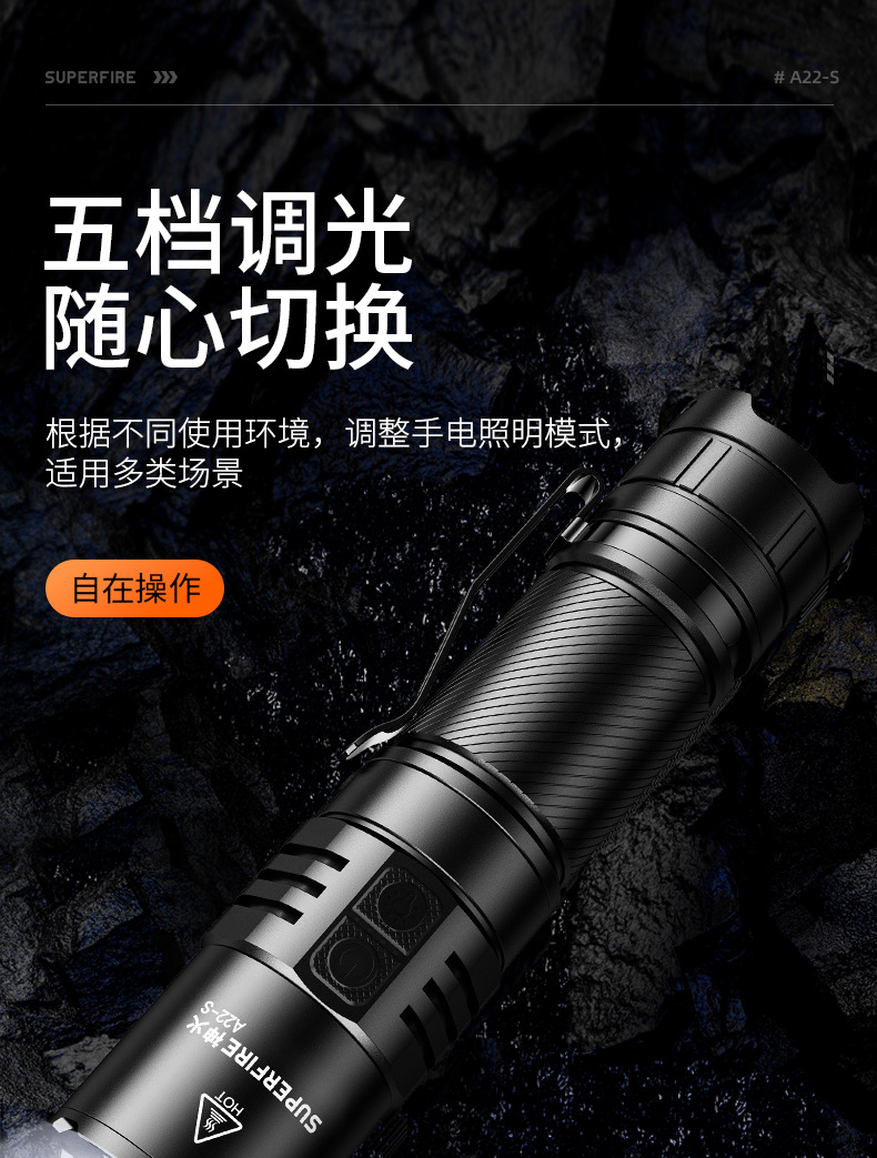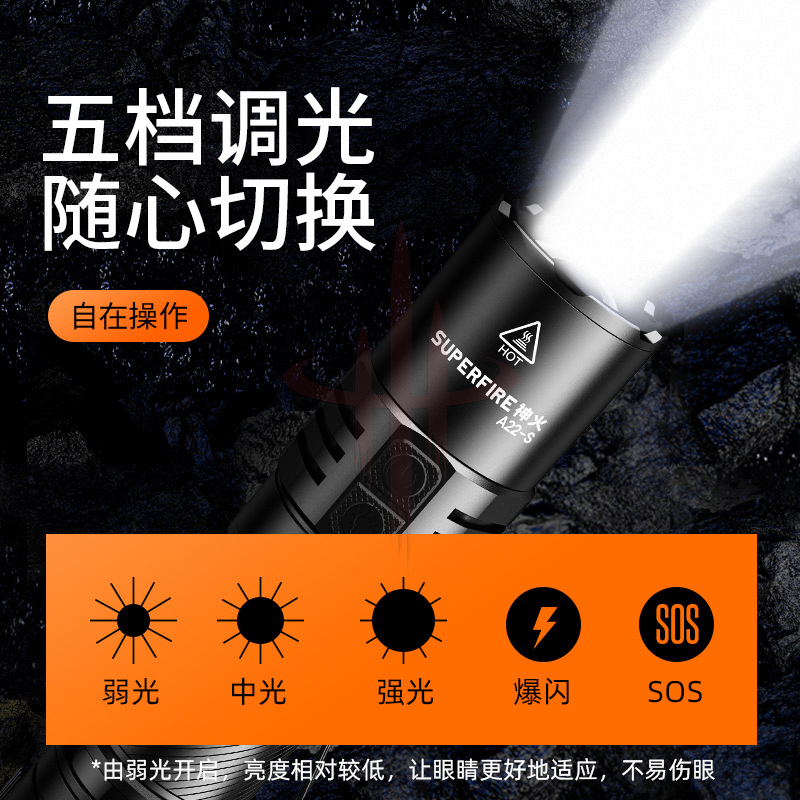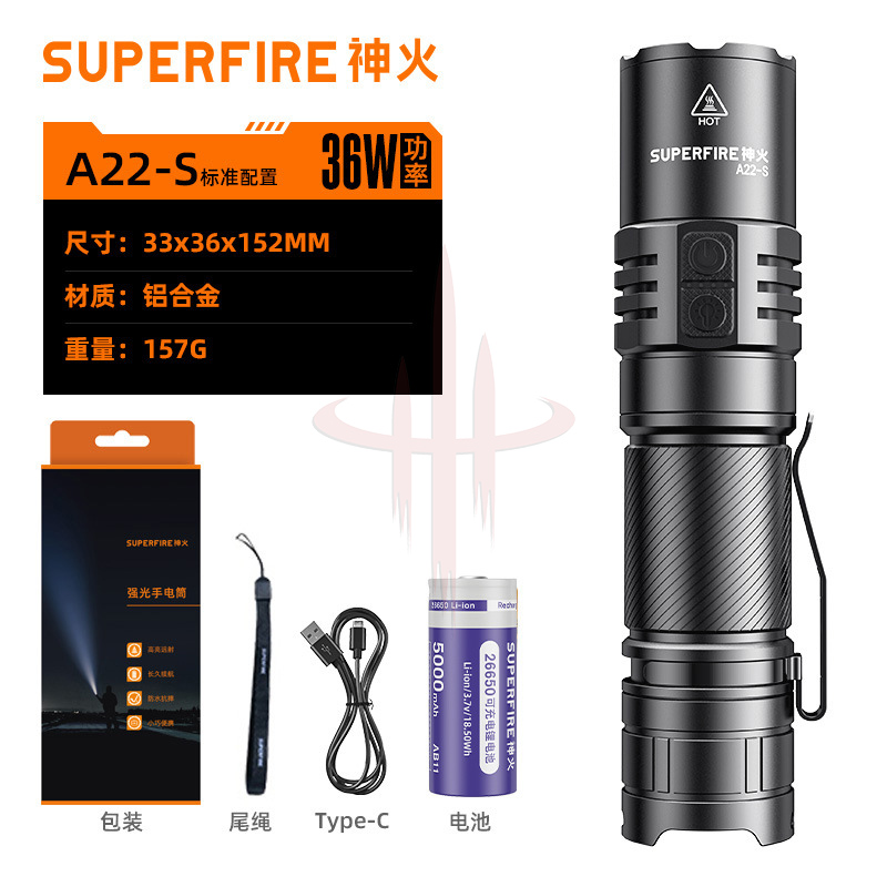 | 产品名称 | 神火A22-S强光手电筒36W充电大功率高亮远射防汛应急照明电筒 |