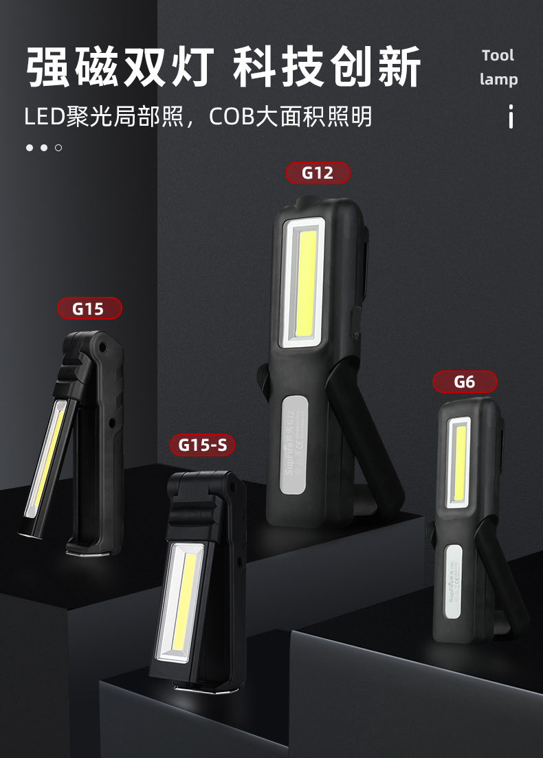 神火 USB多功能COB磁铁汽修工作灯LED应急手电筒可折叠检修工作灯