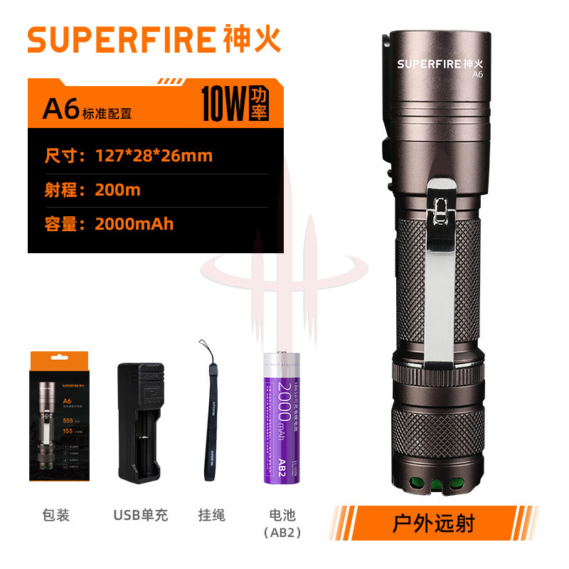| 产品名称 | 神火厂家直销A6微型防狼迷你小手电筒强光可充电家用户外远射电筒 |
