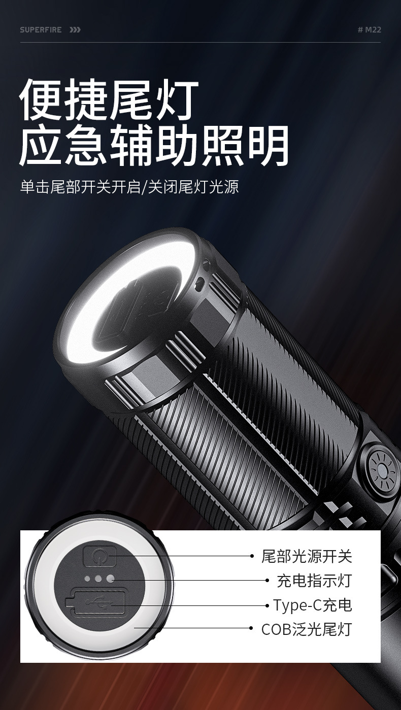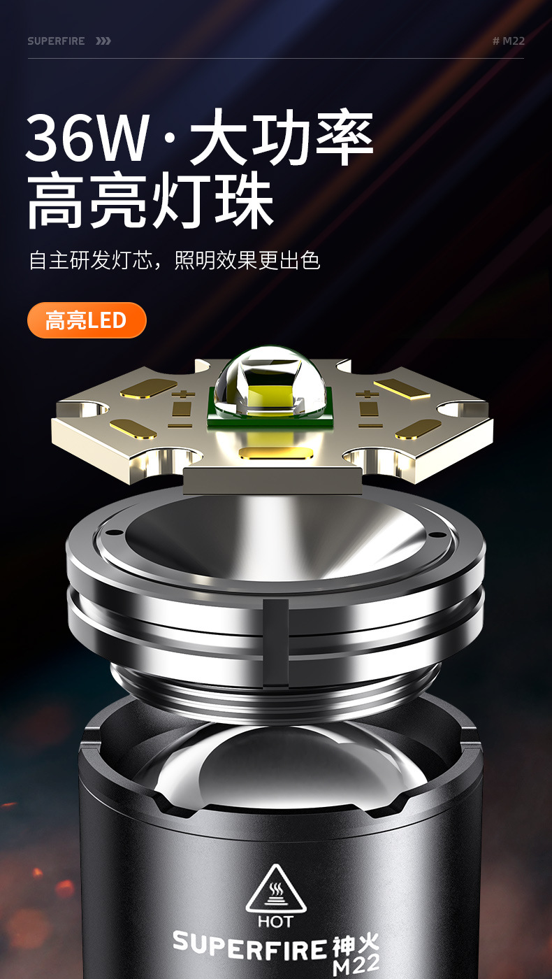 | 产品名称 | 神火M22强光高亮手电筒铝合金四核P50灯芯断电保护电筒厂家批发 |