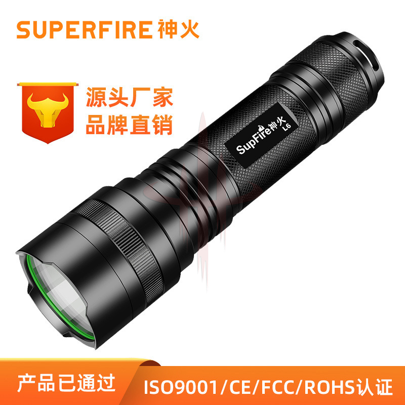 定制神火L6厂家批发铝合金强光手电筒 LED夜骑钓鱼户外应急防汛