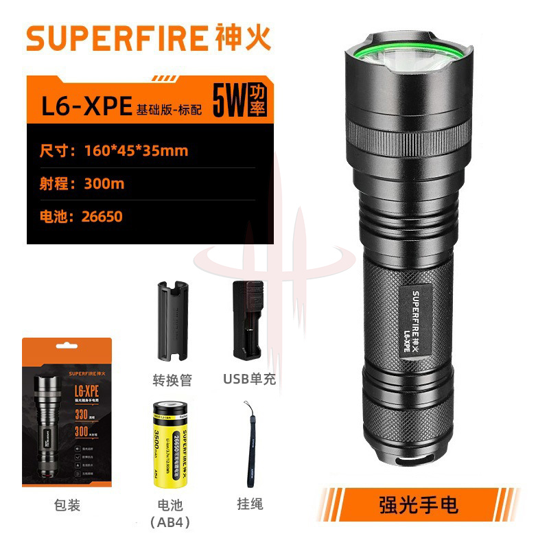 | 产品名称 | 定制神火L6厂家批发铝合金强光手电筒 LED夜骑钓鱼户外应急防汛 |