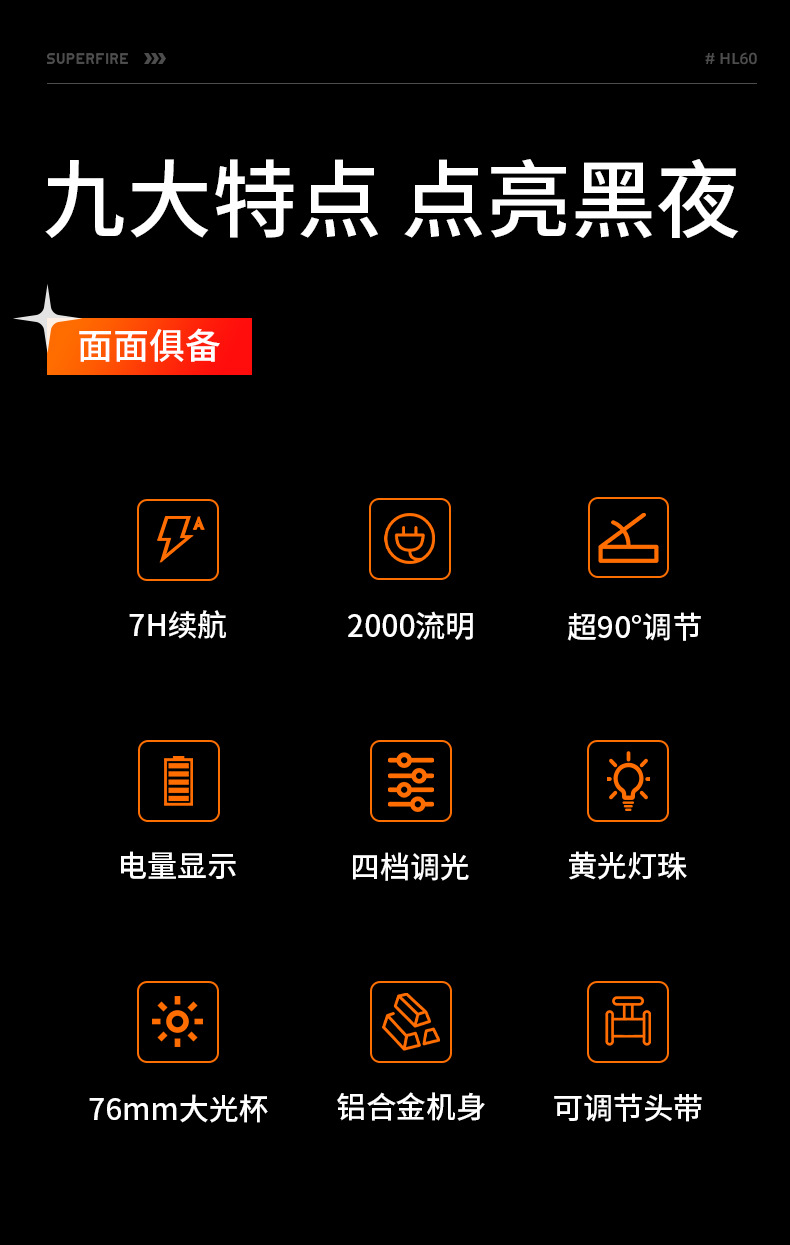 | 制造商型号 | HL60(36W+8000毫安+8.5小时续航) |