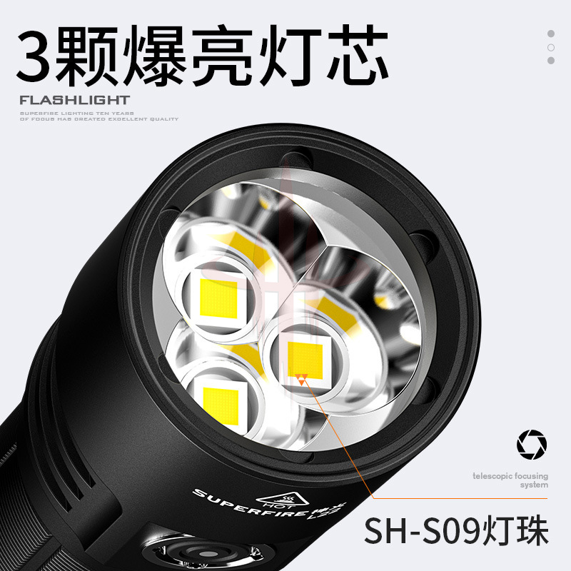 神火新款大功率照明强光手电镭射炮户外多功能充电LED应急手电筒