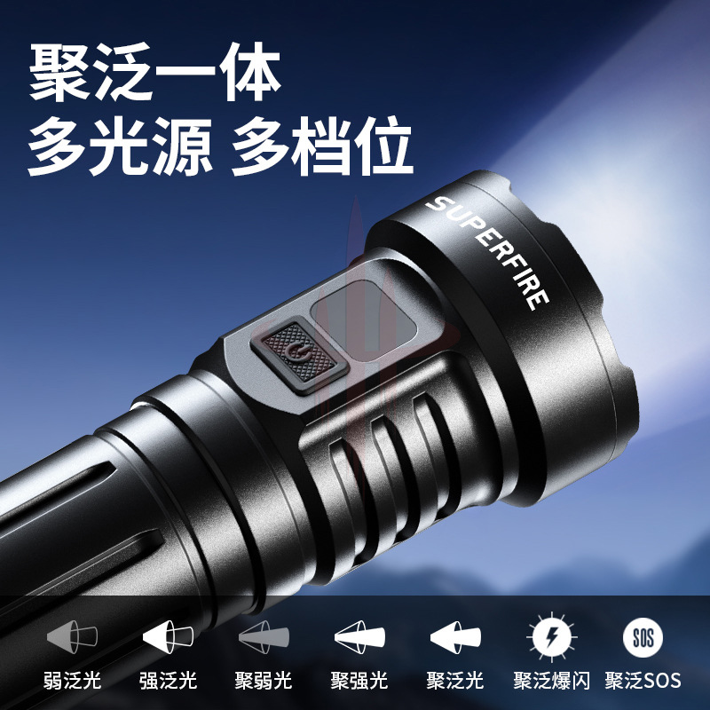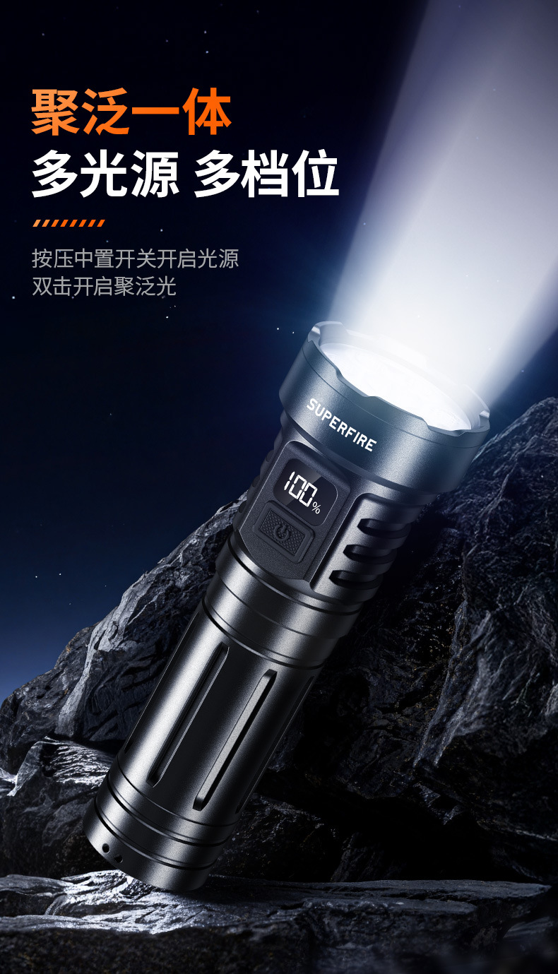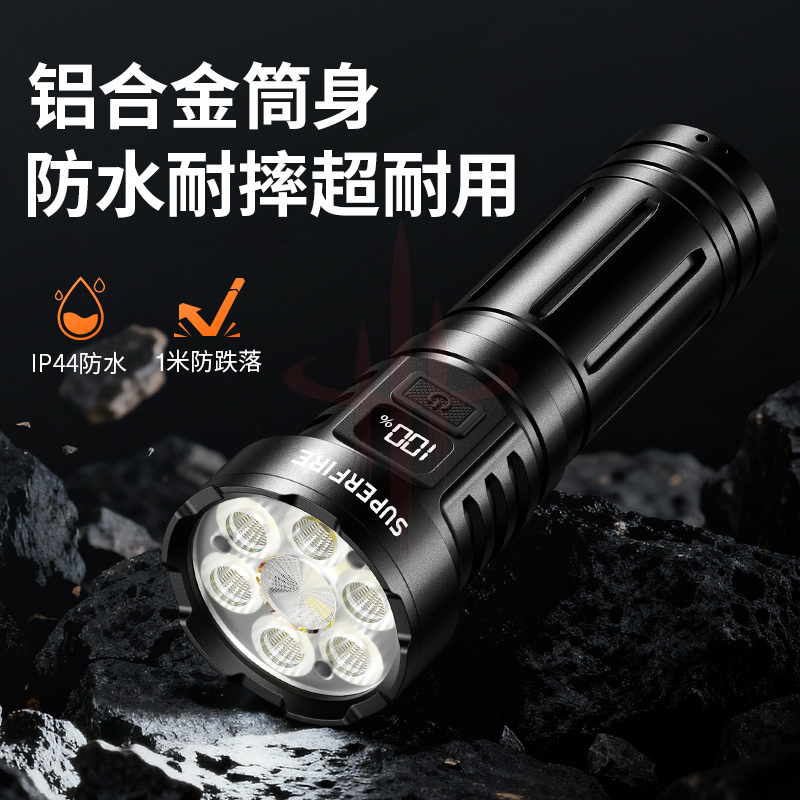 神火大功率强光手电户外防水铝合金多功能高流明LED屏显应急手电