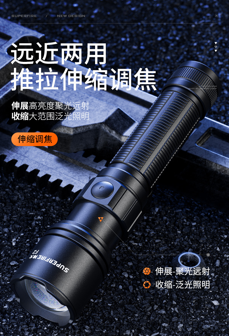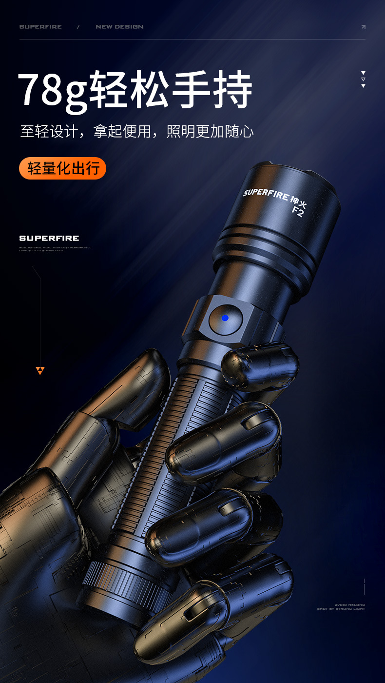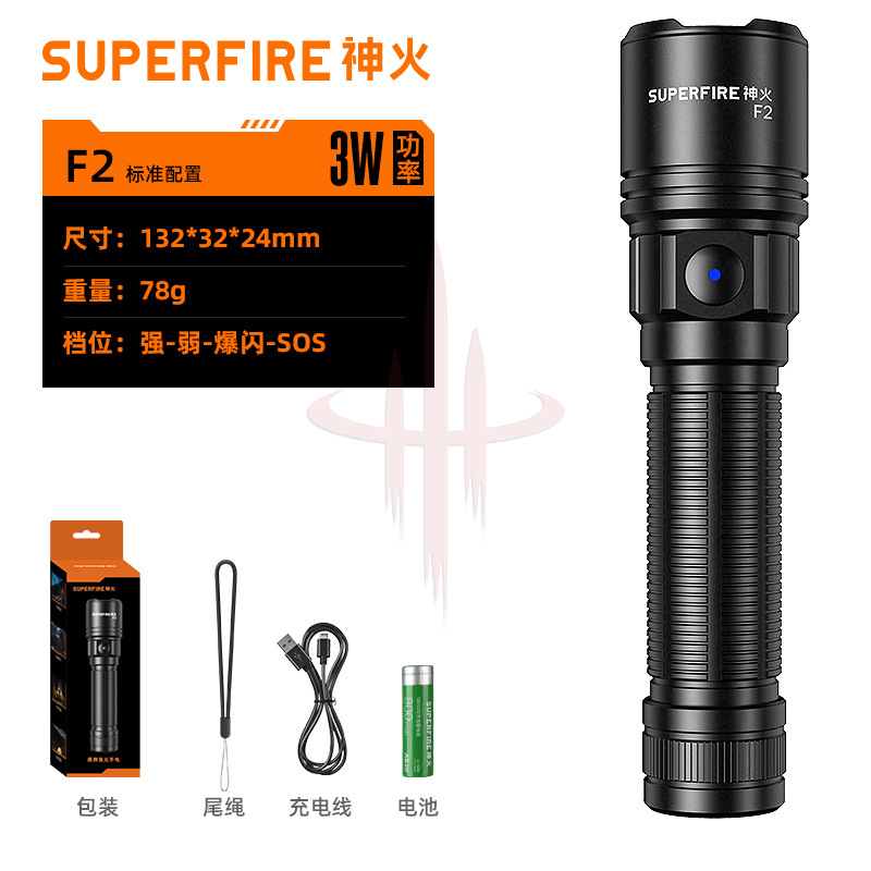| 产品名称 | 神火F2新款户外LED便携照明手电USB充电变焦铝合金迷你强光手电筒 |