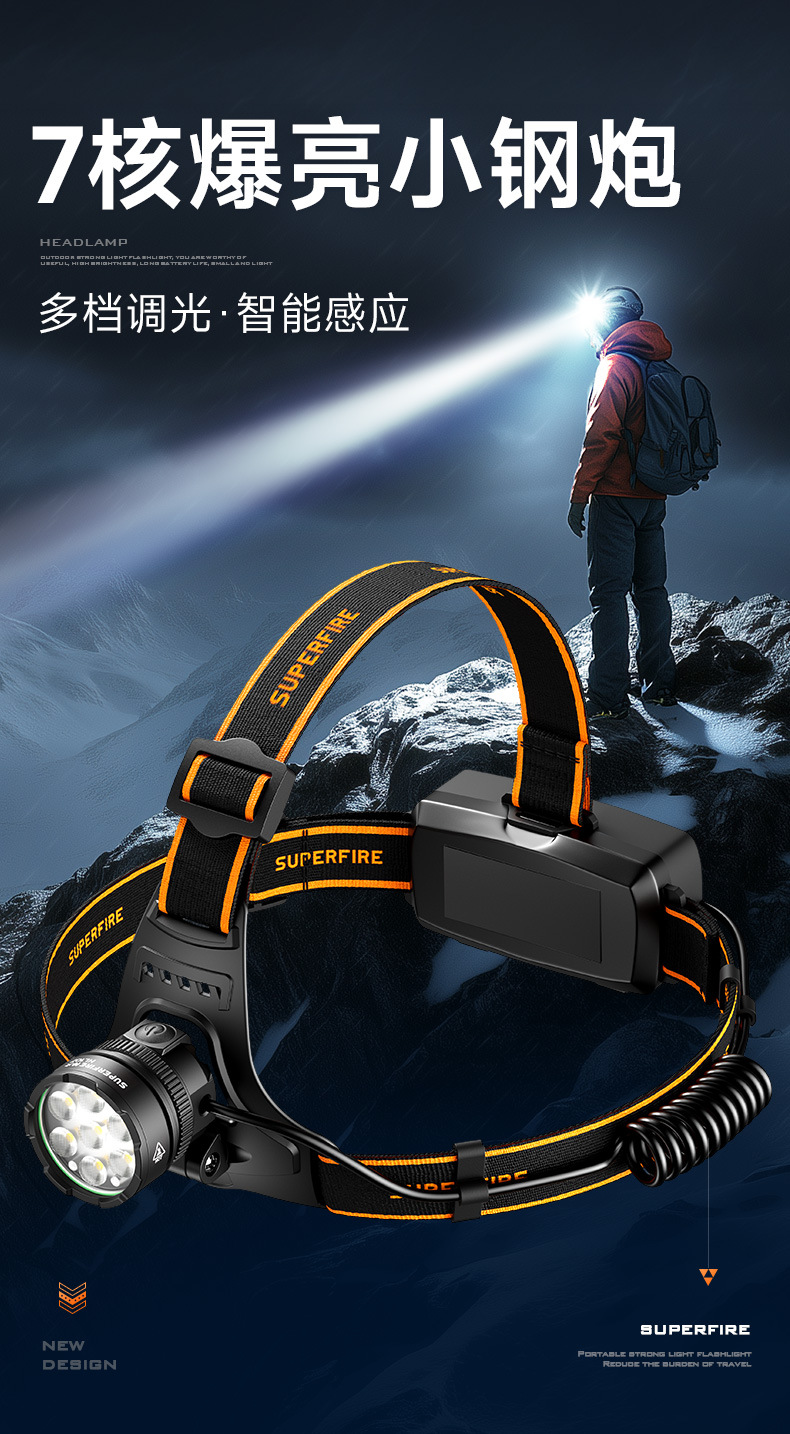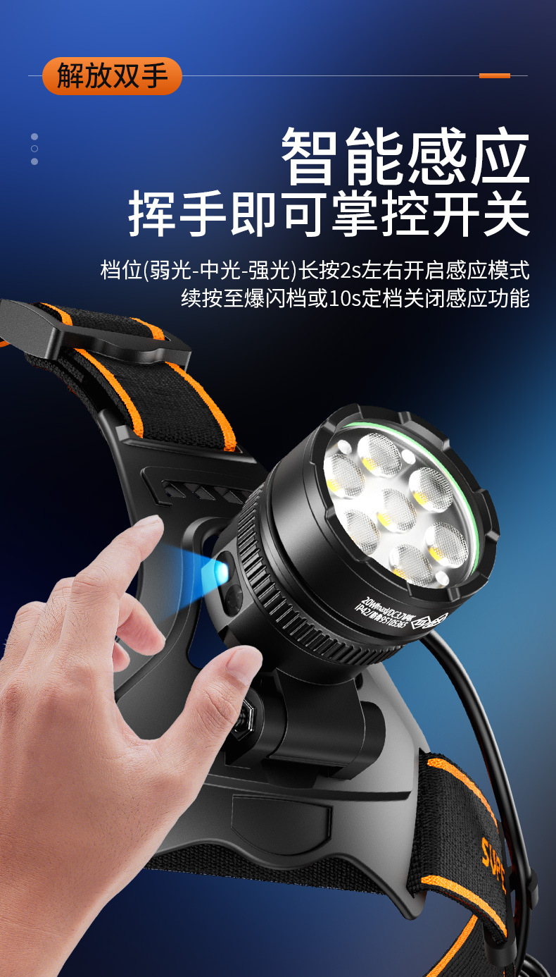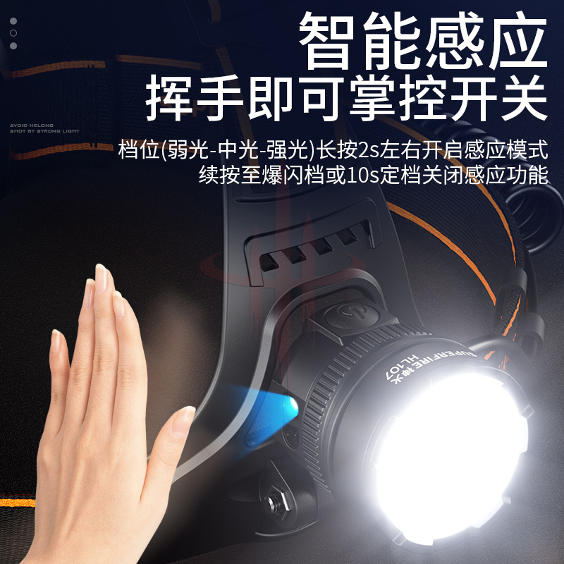 神火HL107感应头灯强光夜钓钓鱼充电超亮超长续航20W头戴式照明