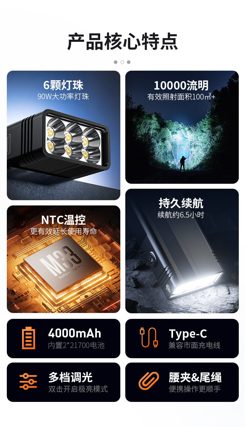 | 产品名称 | 定制神火M33高流明手电户外应急充电多功能六核大功率强光手电筒 |