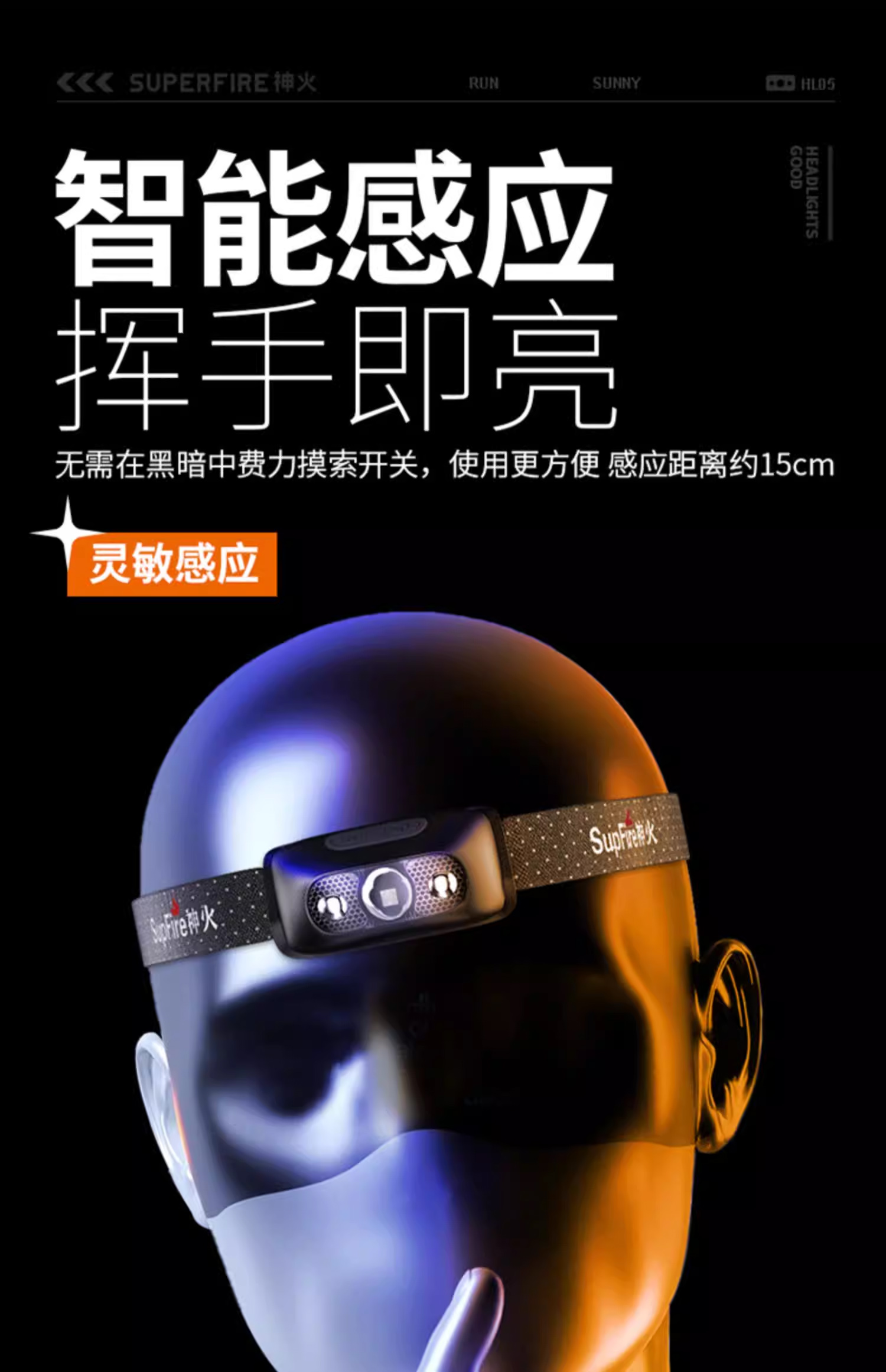 神火挥手感应头灯led强光户外防水COB迷你便携充电钓鱼头灯批发