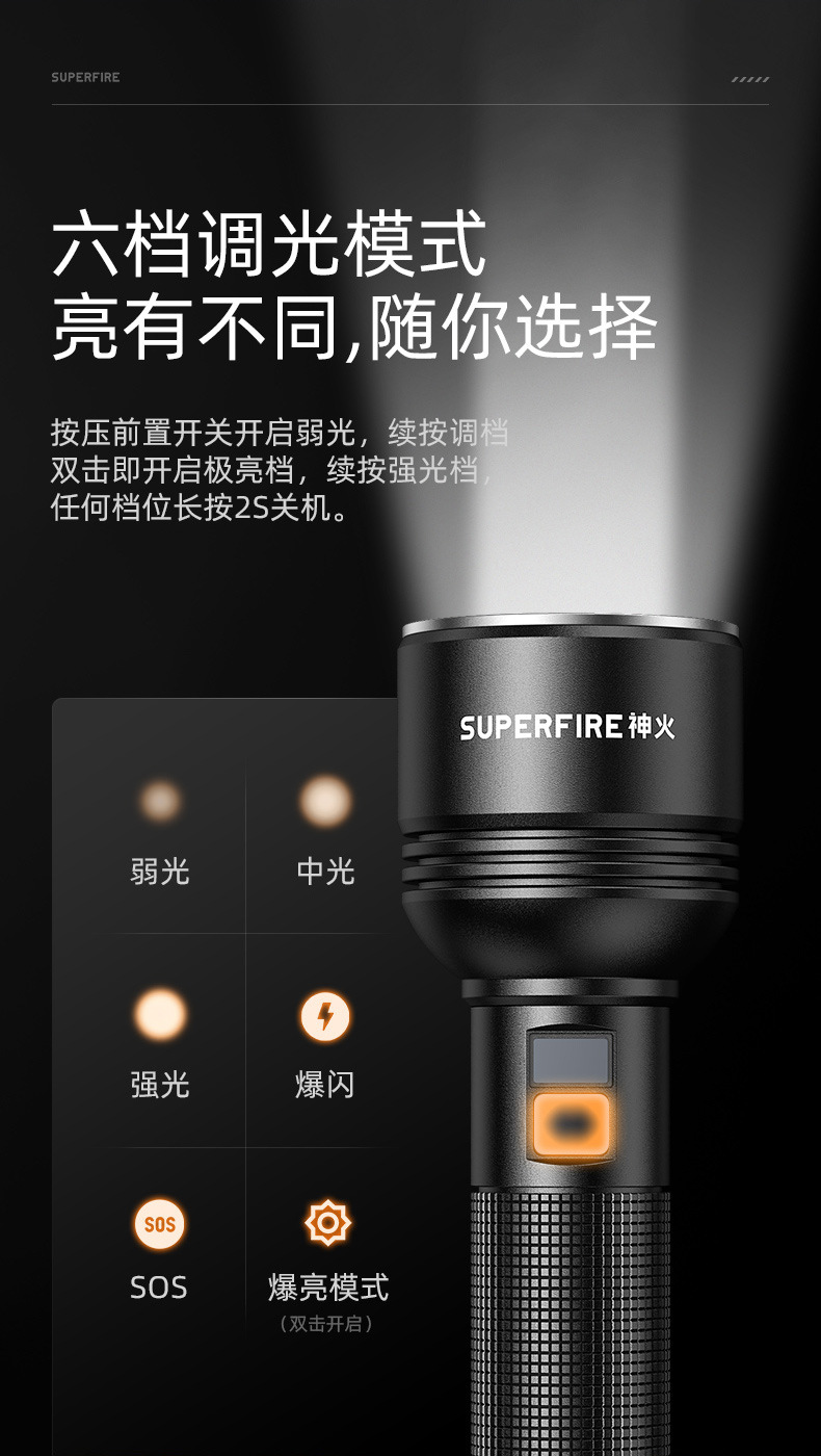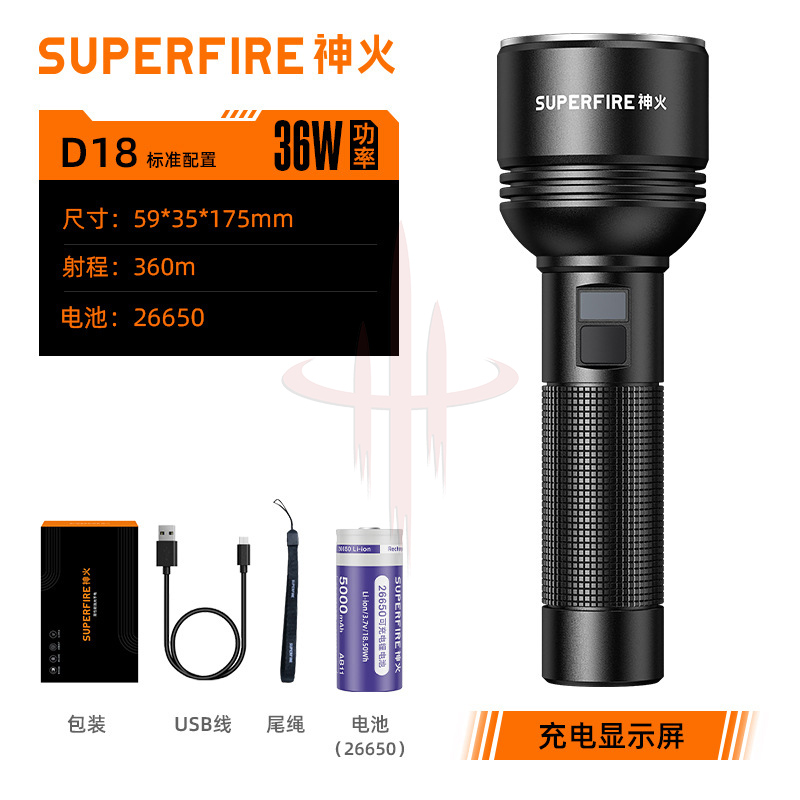 | 产品名称 | SUPERFIRE神火D18系列大容量高亮户外露营登山搜索救援强光手电筒 |