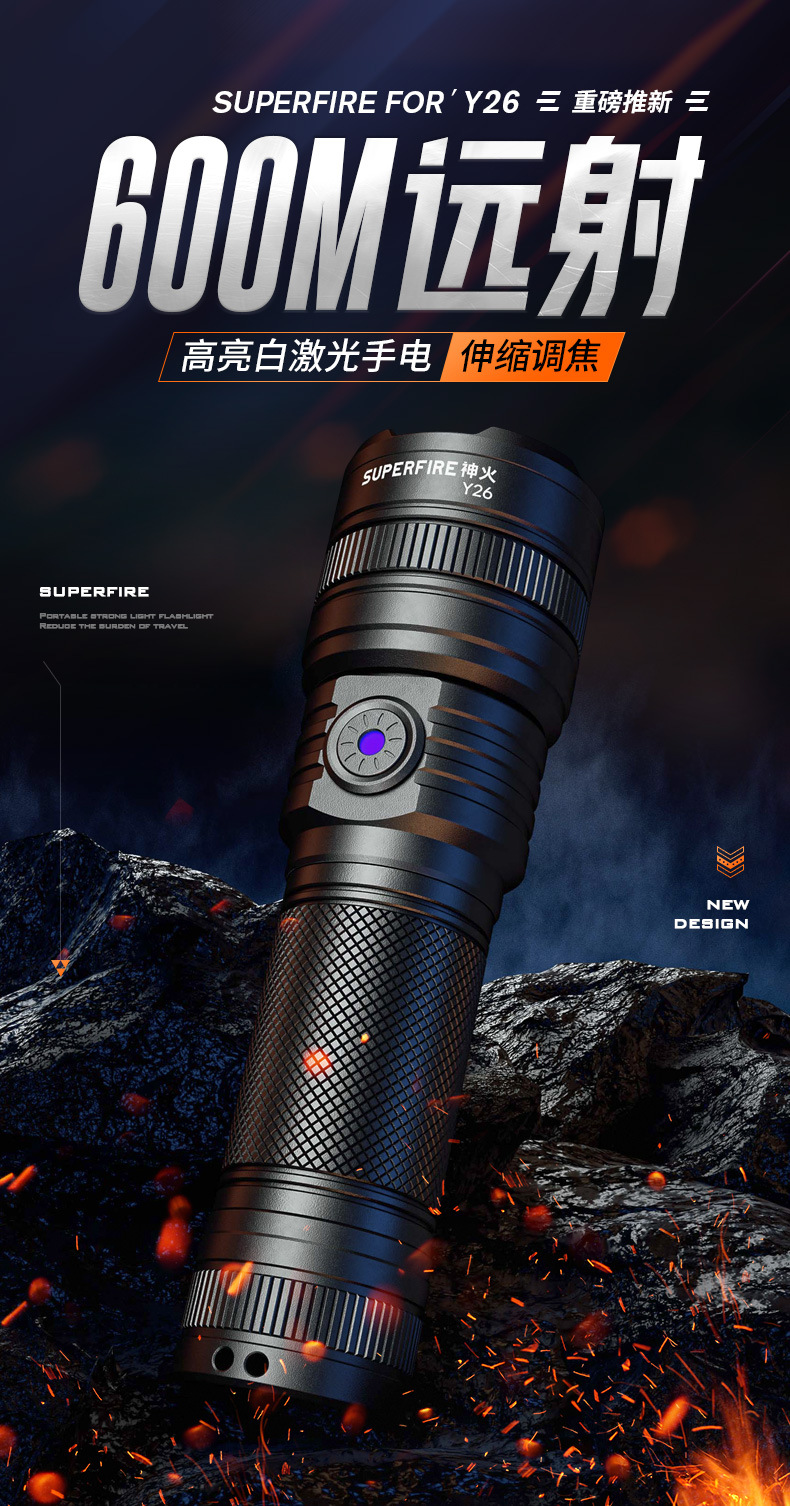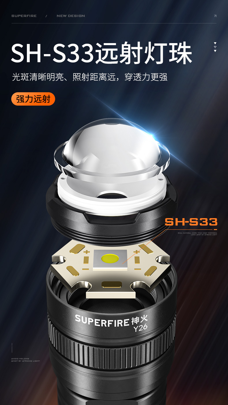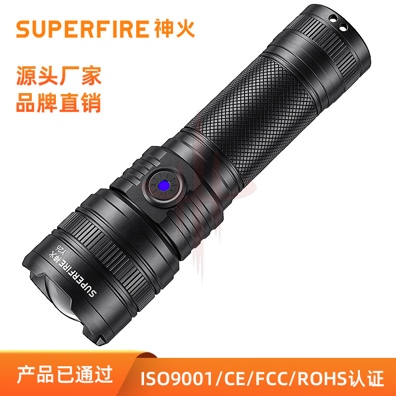| 产品名称 | 神火Y26手电筒强光充电户外超亮变焦防水铝合金防身usb远射照明灯 |