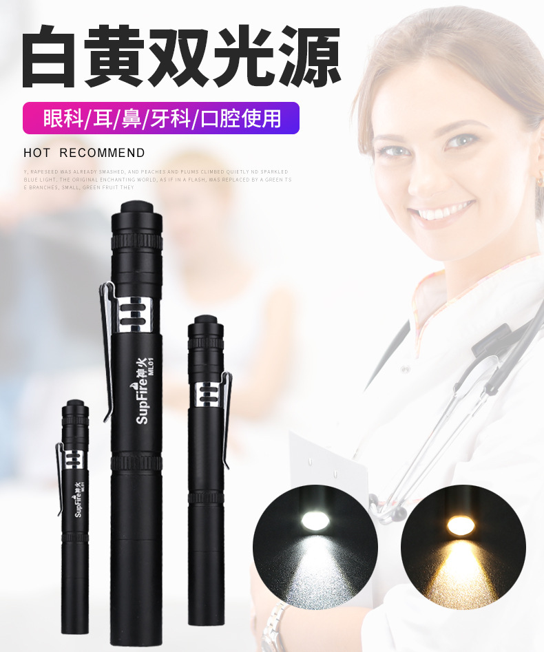 | 产品名称 | 神火 led笔式手电筒白黄双光源医护手电铝合金笔灯笔型手电ML01 |