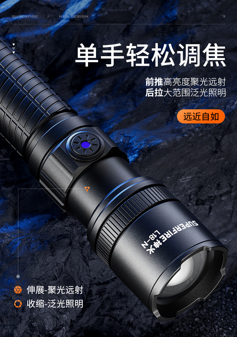 | 产品名称 | 定制神火L18-N防水手电强光超亮远射可充电家用户外LED便携手电筒 |