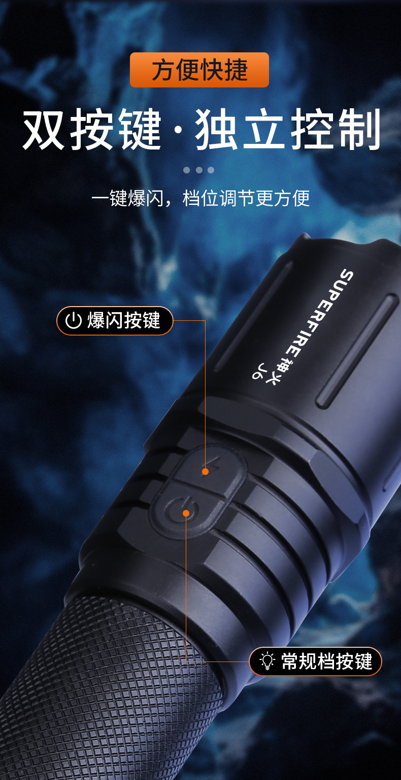 神火 J-6带一键爆闪 LED铝合金充电户外防身战术强光手电筒