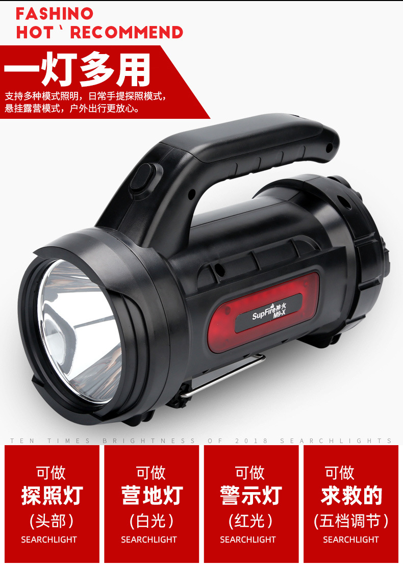 | 产品名称 | 手提探照灯led手提灯户外多功能巡逻灯手持强光灯充电防水应急灯 |