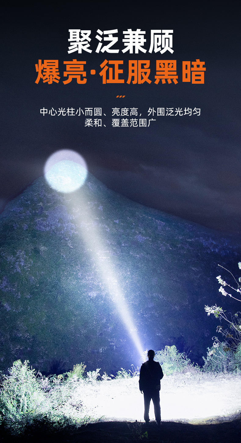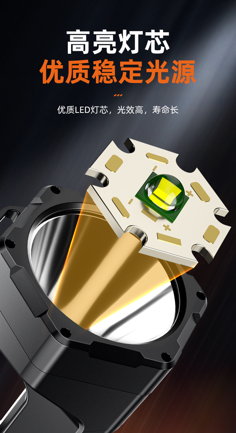 严选神火强光手电筒大功率灯芯高亮巡逻LED手提探照灯厂家批发
