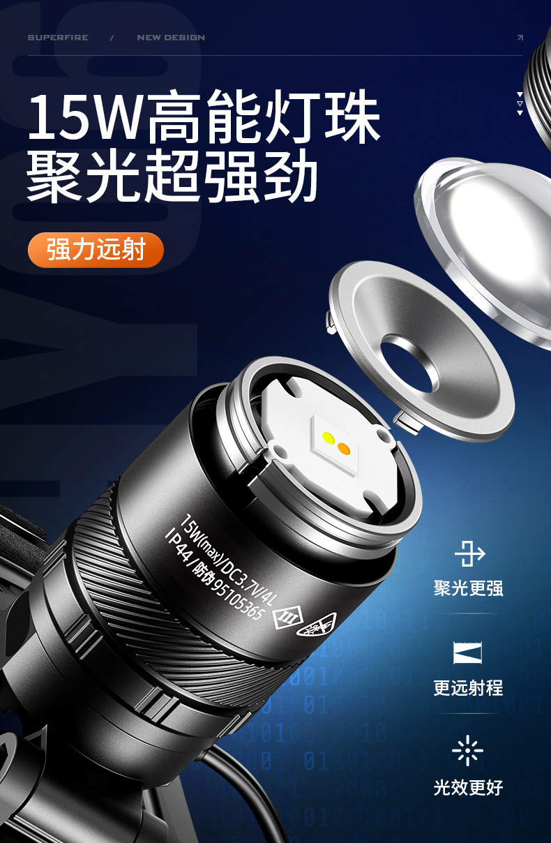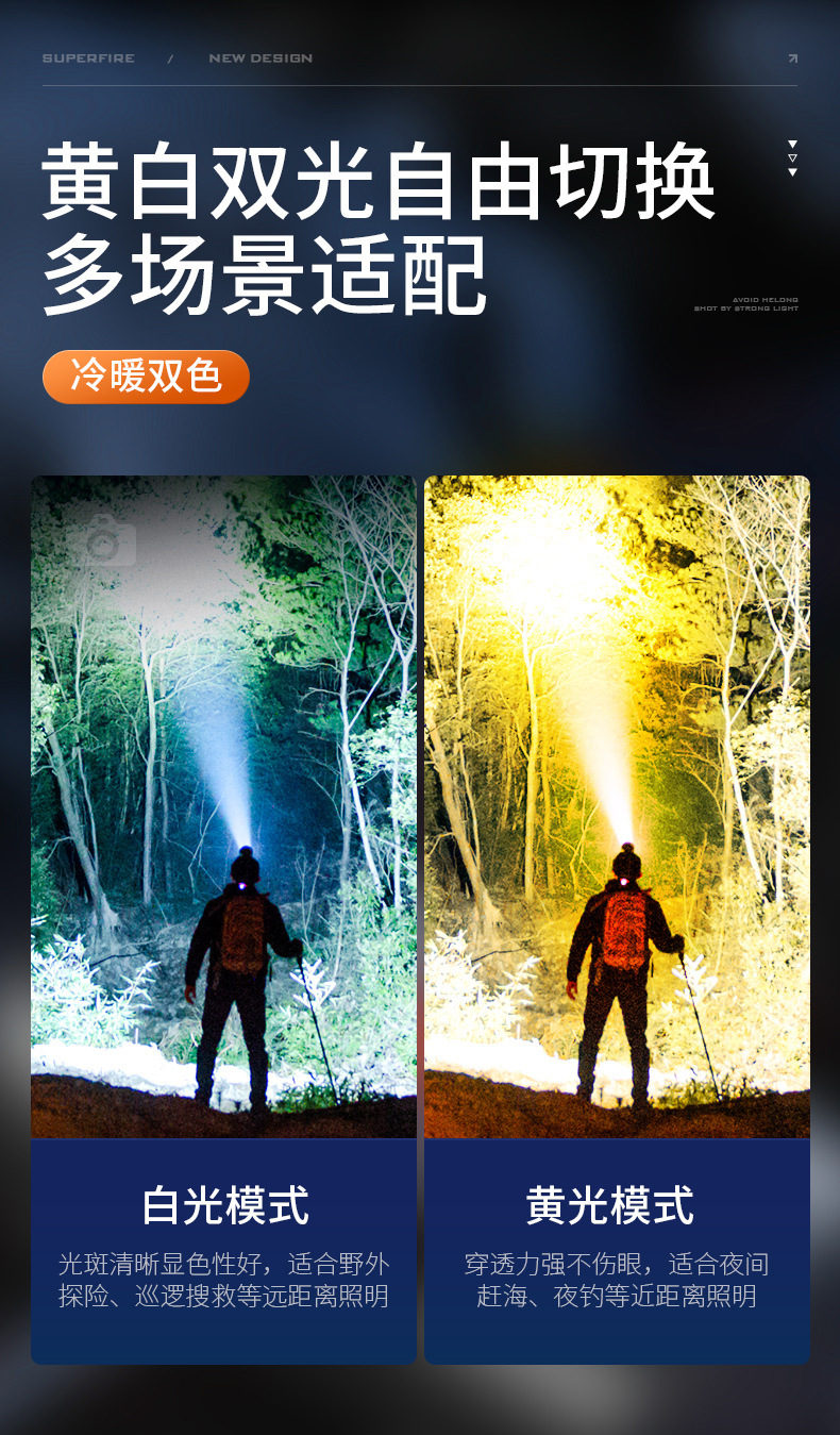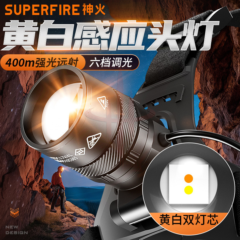 | 产品名称 | 神火黄白光头灯15W高亮远射户外强光充电旋转变焦led感应头灯HY06 |