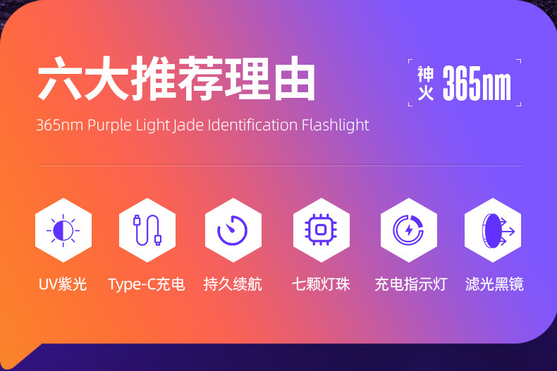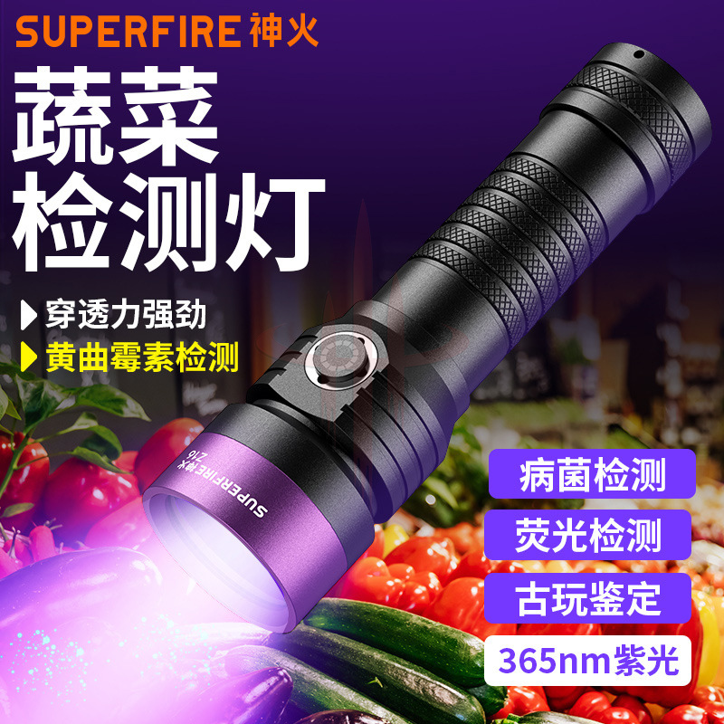 | 产品名称 | 神火UV黑镜紫光手电筒365NM铝合金验钞led猫藓蔬菜尿液检测紫光灯 |