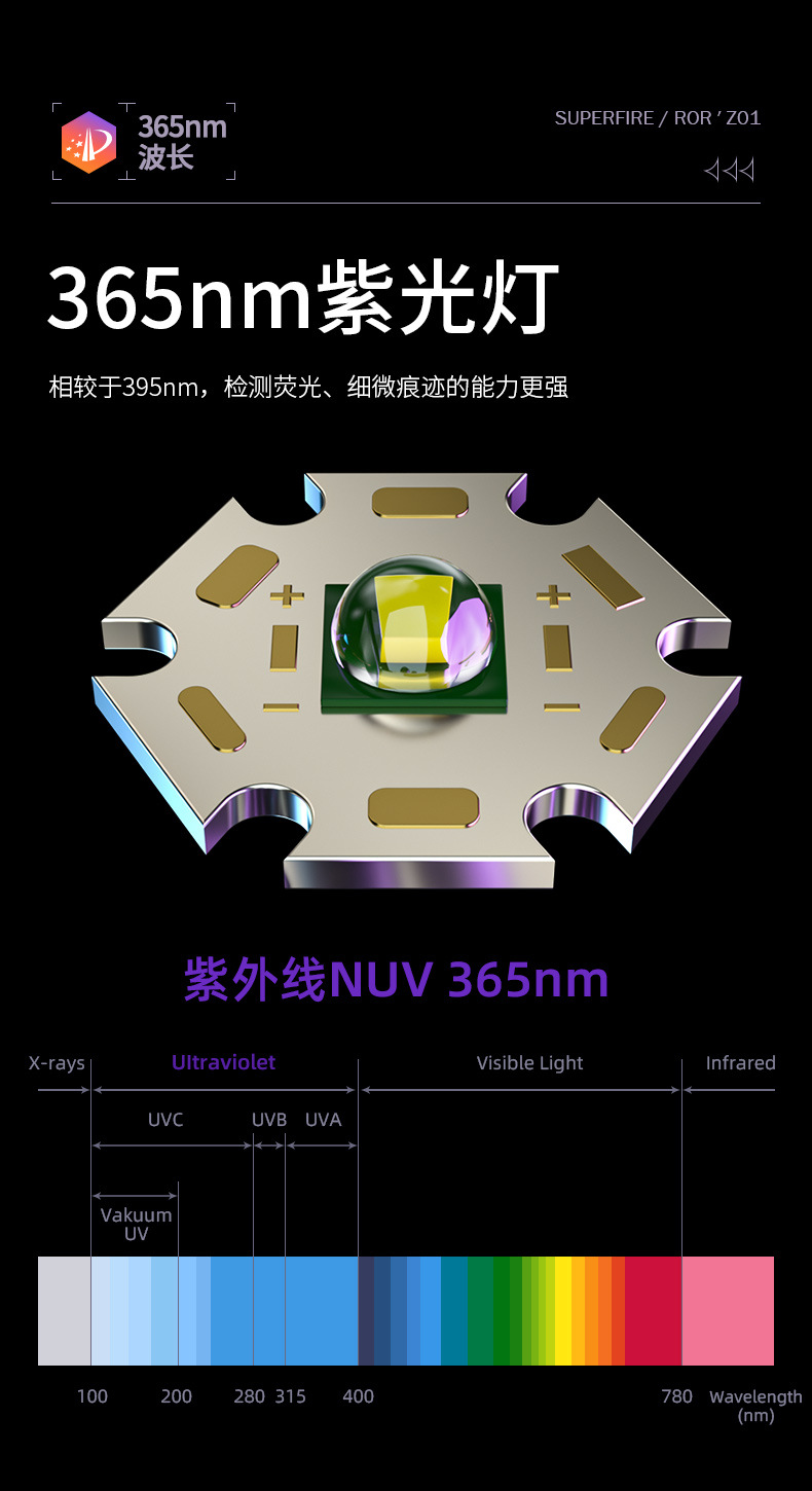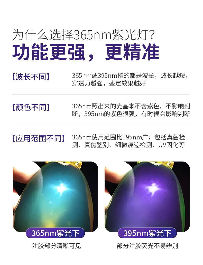 制造商型号:S11-H(3W+800毫安)365nm紫光手电