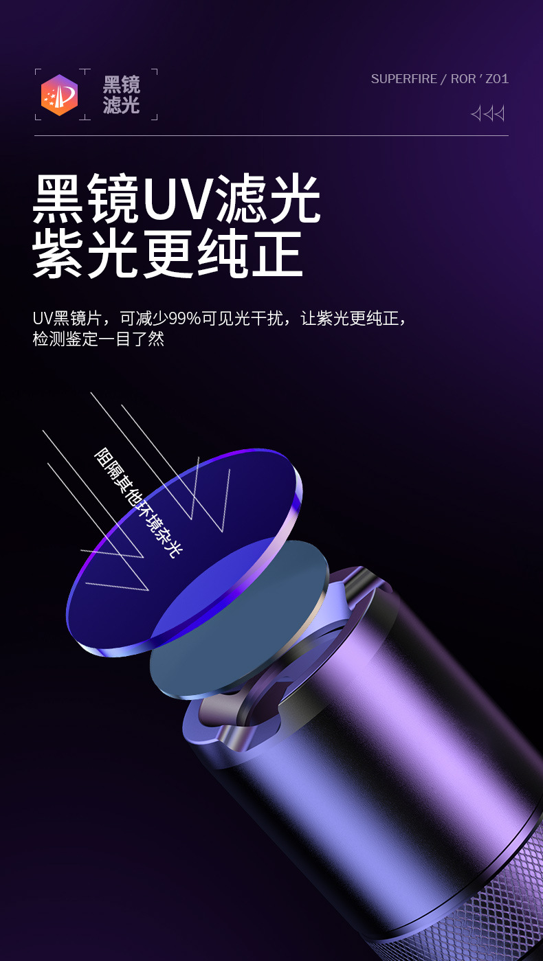 | 制造商型号 | Z01(3W+UV365)365nm紫光手电 |