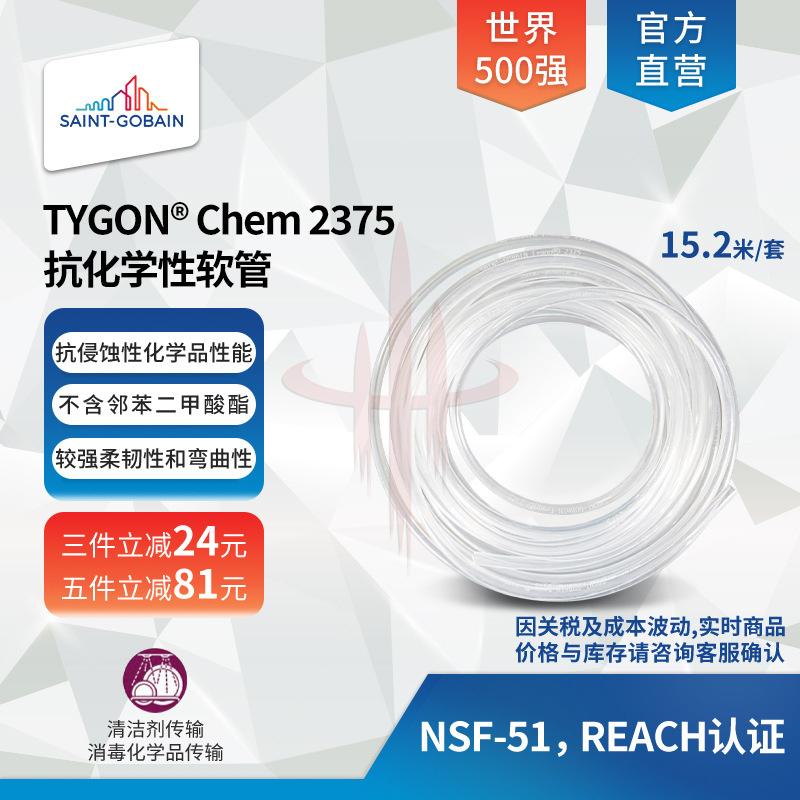 | 产品名称 | 圣戈班TYGON 2375聚烯烃高透抗化学性食品饮料管医院消毒管15米 |
