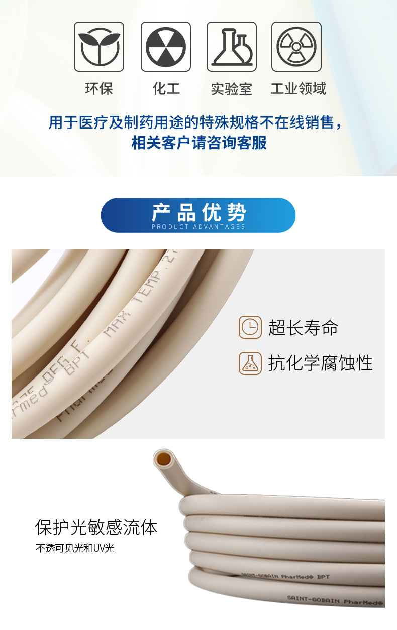 | 产品名称 | 圣戈班 PHARMED-BPT 耐高温135耐腐蚀耐化学品长寿命蠕动泵管7.6m |