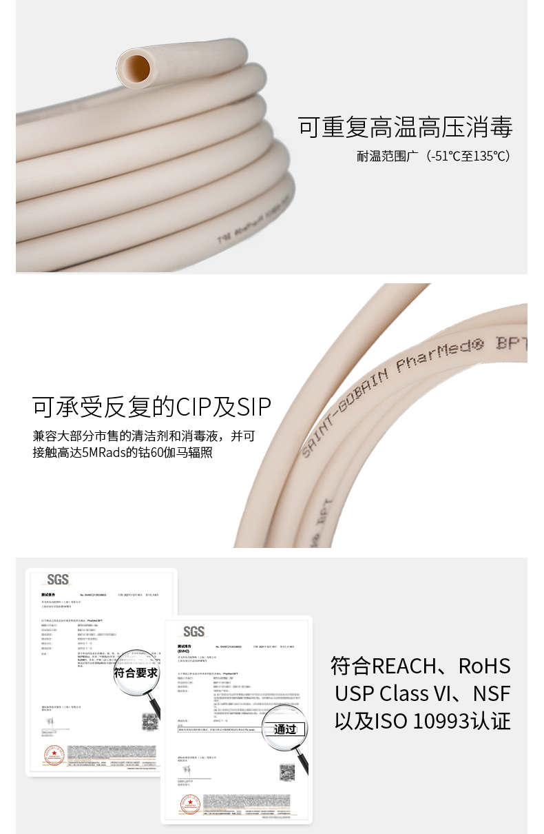 | 产品名称 | 圣戈班 PHARMED-BPT 耐高温135耐腐蚀耐化学品长寿命蠕动泵管7.6m |
