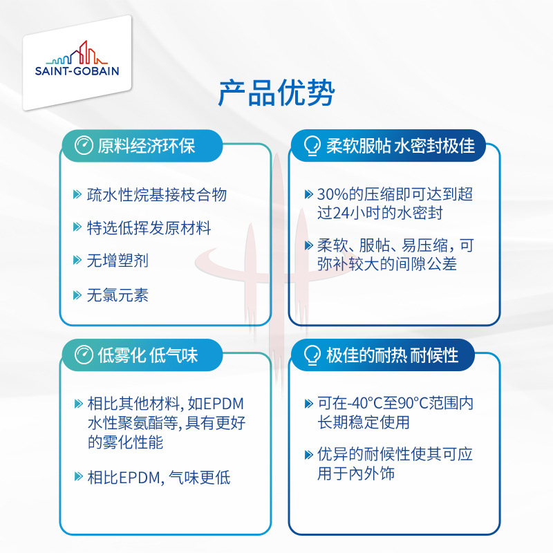 圣戈班NORSEAL PU泡绵聚氨酯泡绵汽车工业用耐热耐候密封缓冲减震