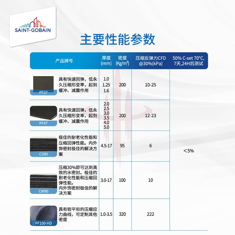 圣戈班NORSEAL PU泡绵聚氨酯泡绵汽车工业用耐热耐候密封缓冲减震
