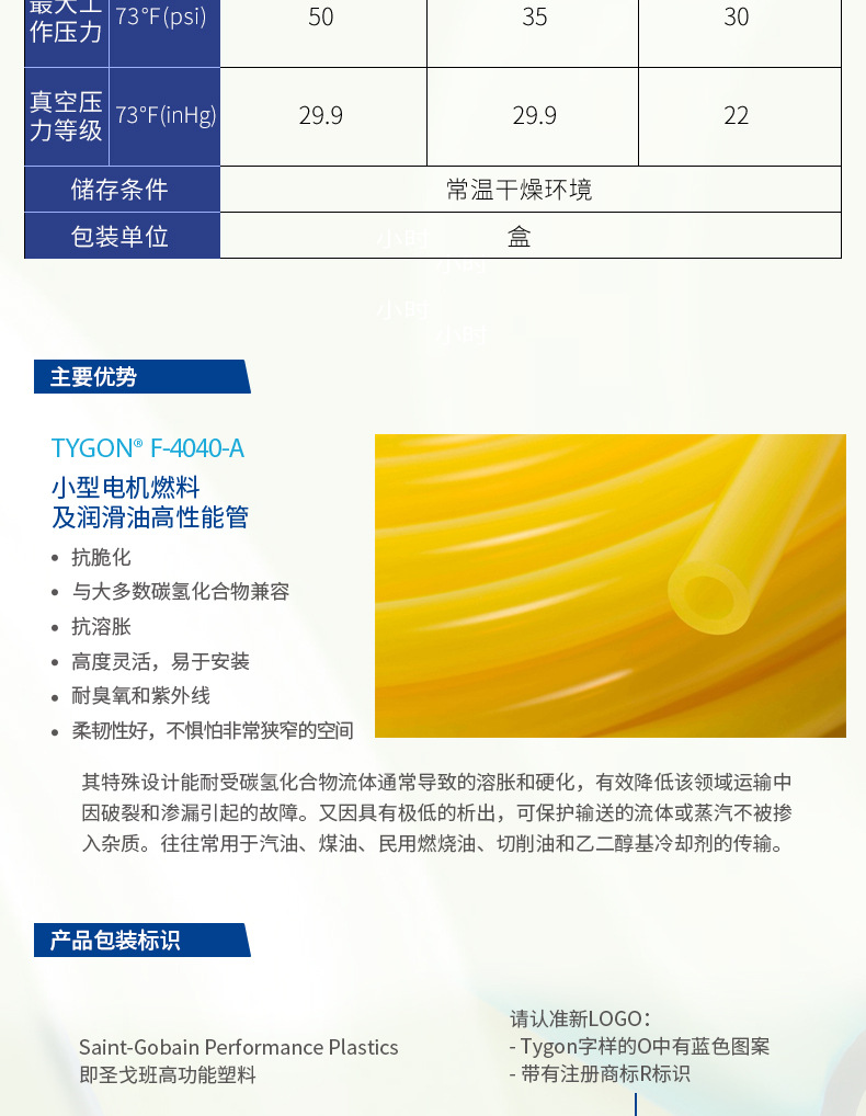 | 产品名称 | 圣戈班TYGON F-4040-A高性能发动机燃油管冷却剂传输AAG00007 |