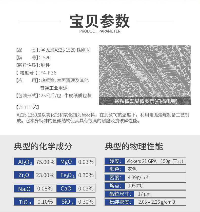 | 产品名称 | 圣戈班锆刚玉 现货25锆 高品质喷砂表面处理 电熔锆刚玉 磨料 |